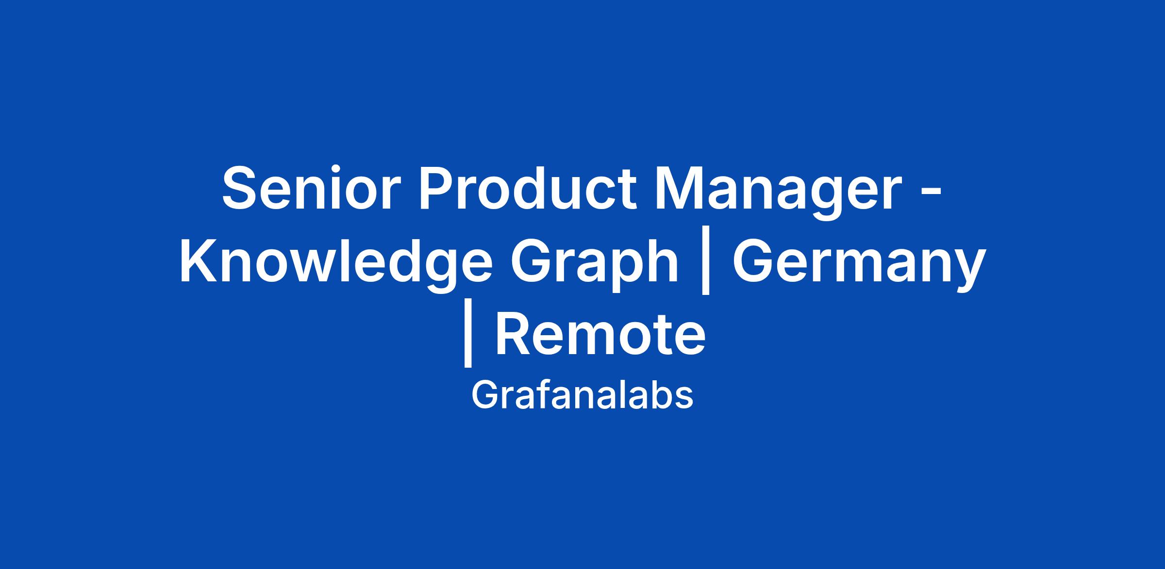 Senior Product Manager - Knowledge Graph | Germany | Remote