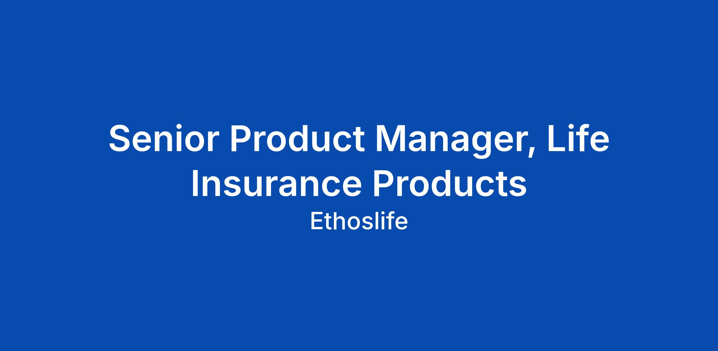 Ethos is looking for a Senior Product Manager, Life Insurance Products with solid experience in the life insurance industry. This includes involvement in developing and launching new life insurance products, understanding policy administration systems, and knowledge of the entire life insurance lifecycle β including product design, distribution... Click Apply to read the full job description.
