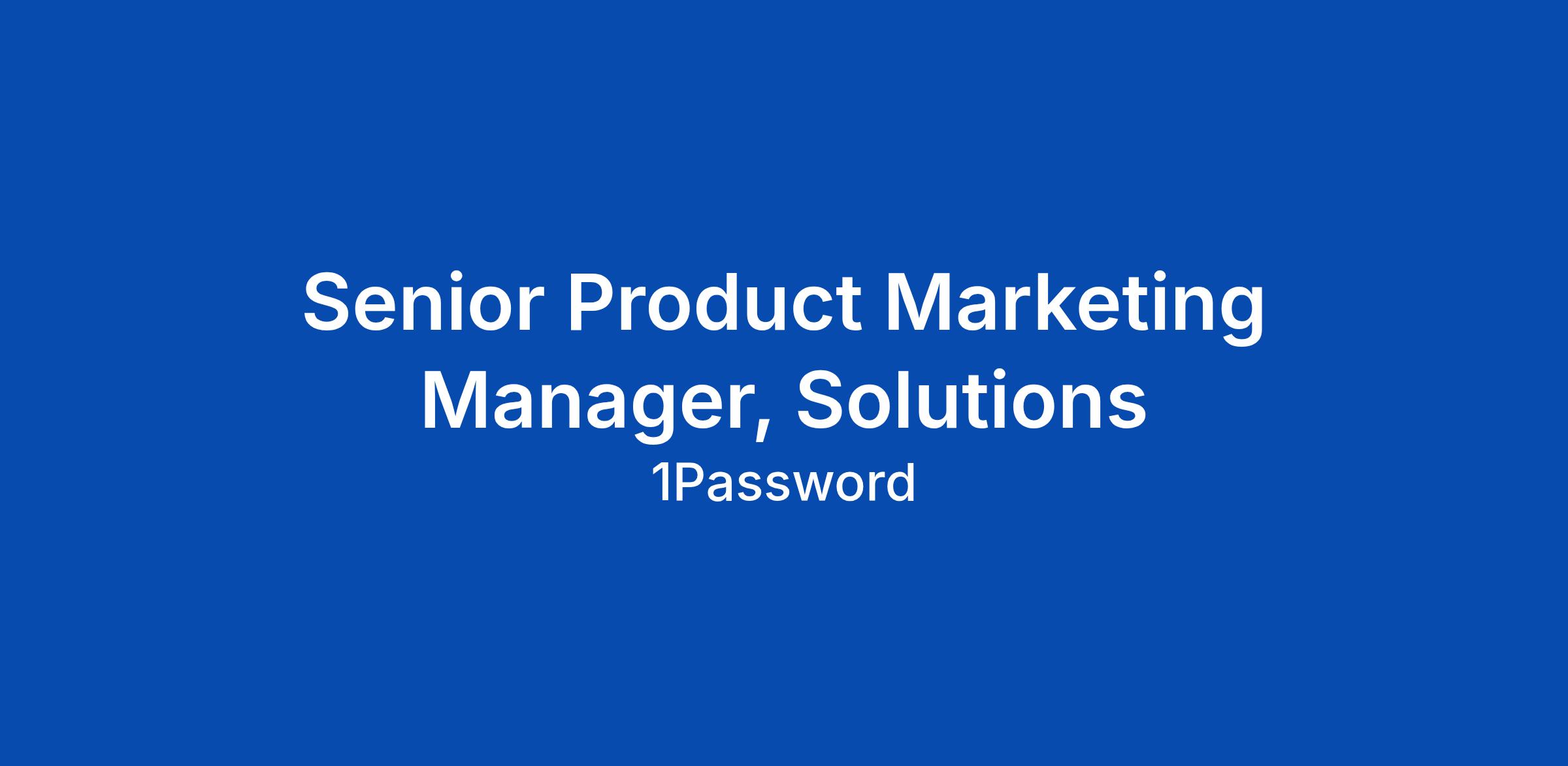 Senior Product Marketing Manager, Solutions