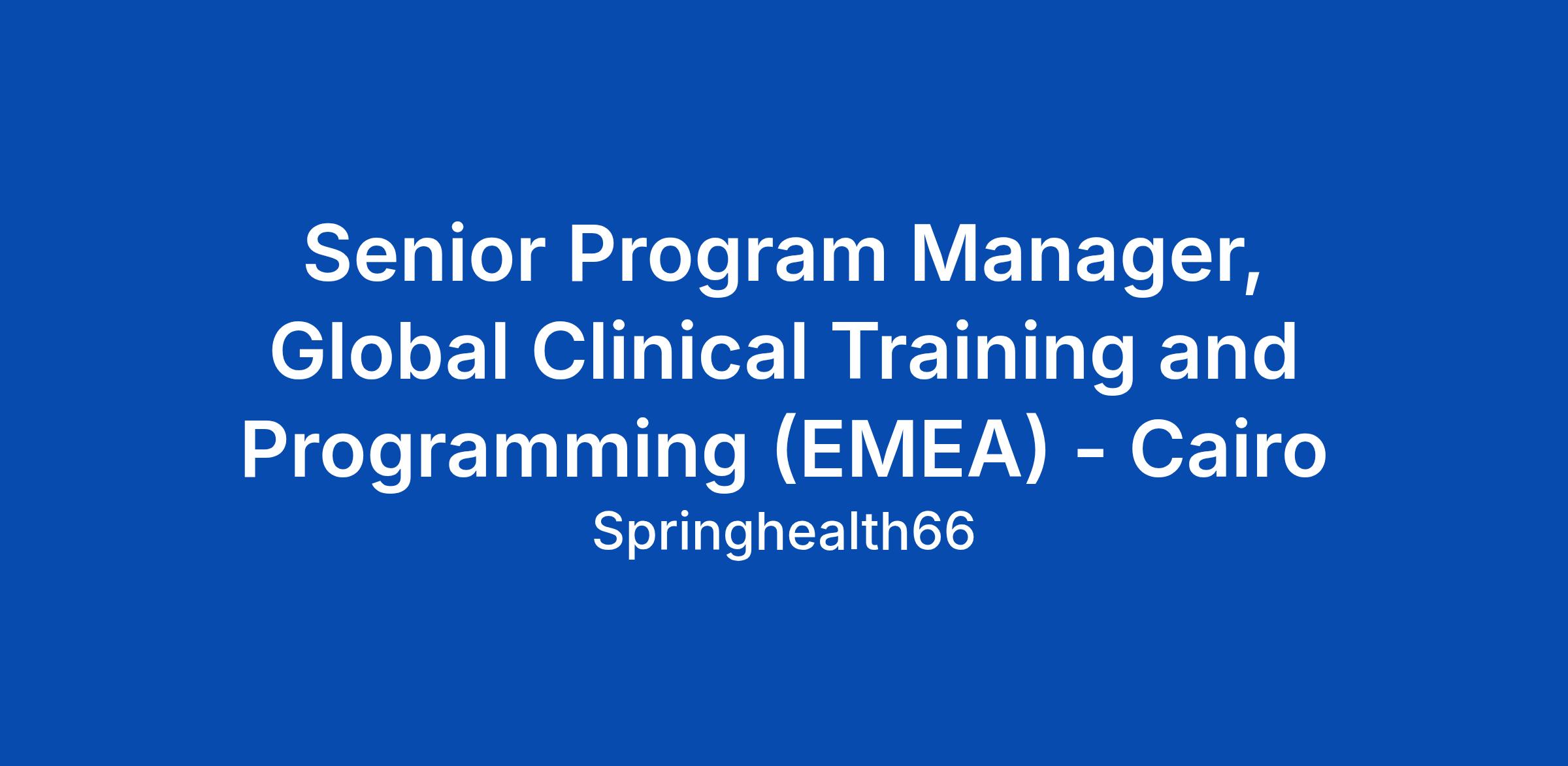 Reporting to the Director of Clinical Training, the Senior Program Manager, Clinical Training and Global Programming will develop the strategy for Spring Health’s global training and programming, serve as the SME for global webinars/WellSprings, coordinate the logistics for training and programming, ensure quality member experience for the global population, meet with customers to develop customized training and programming for our larger global accounts. This is a full time remote position seated in Europe, Middle East, or Africa. Travel will be required up to 30% of the time for in person trainings.