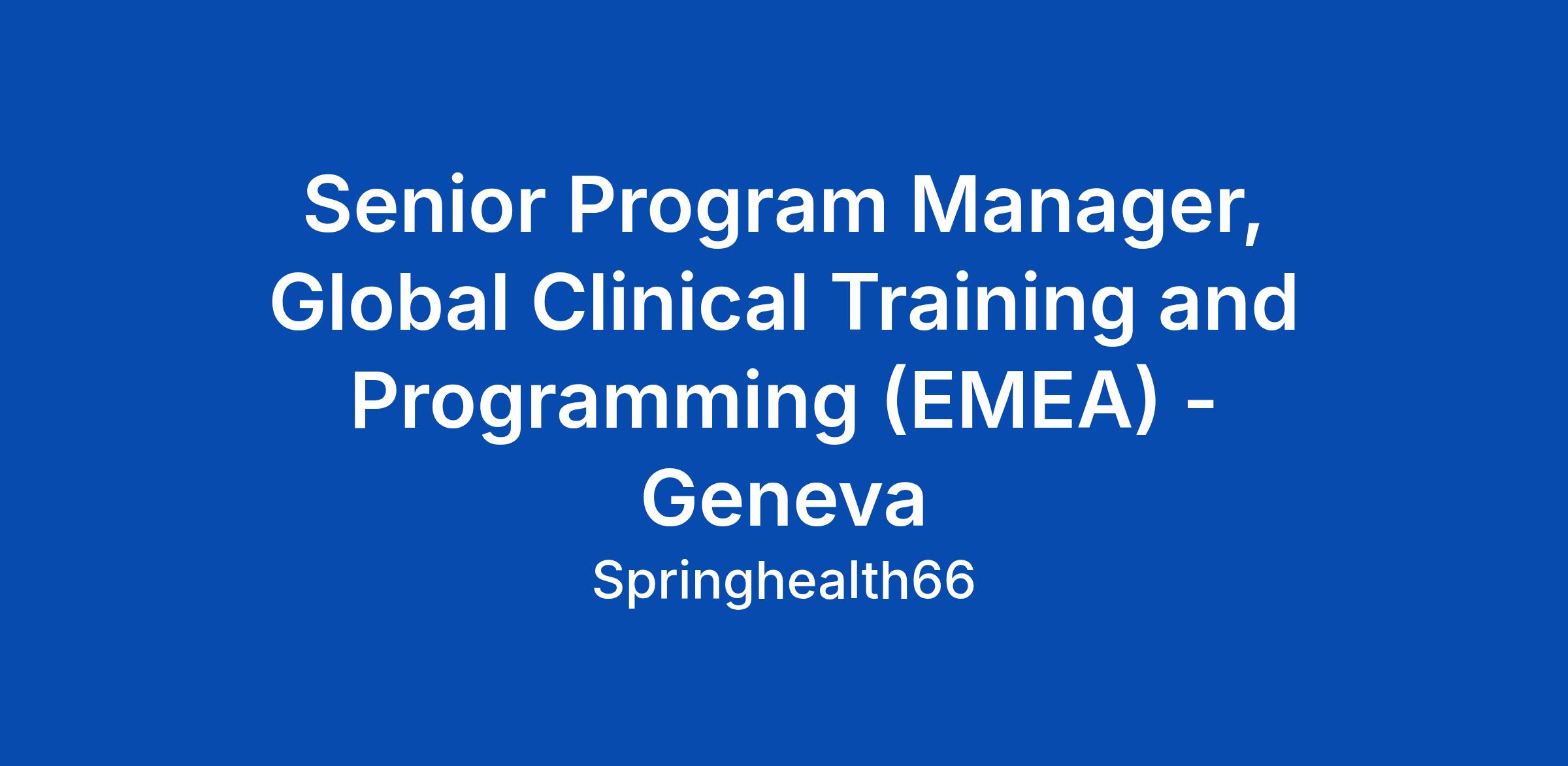 Reporting to the Director of Clinical Training, the Senior Program Manager, Clinical Training and Global Programming will develop the strategy for Spring Health’s global training and programming, serve as the SME for global webinars/WellSprings, coordinate the logistics for training and programming, ensure quality member experience for the global population, meet with customers to develop customized training and programming for our larger global accounts. This is a full time remote position seated in Europe, Middle East, or Africa. Travel will be required up to 30% of the time for in person trainings.