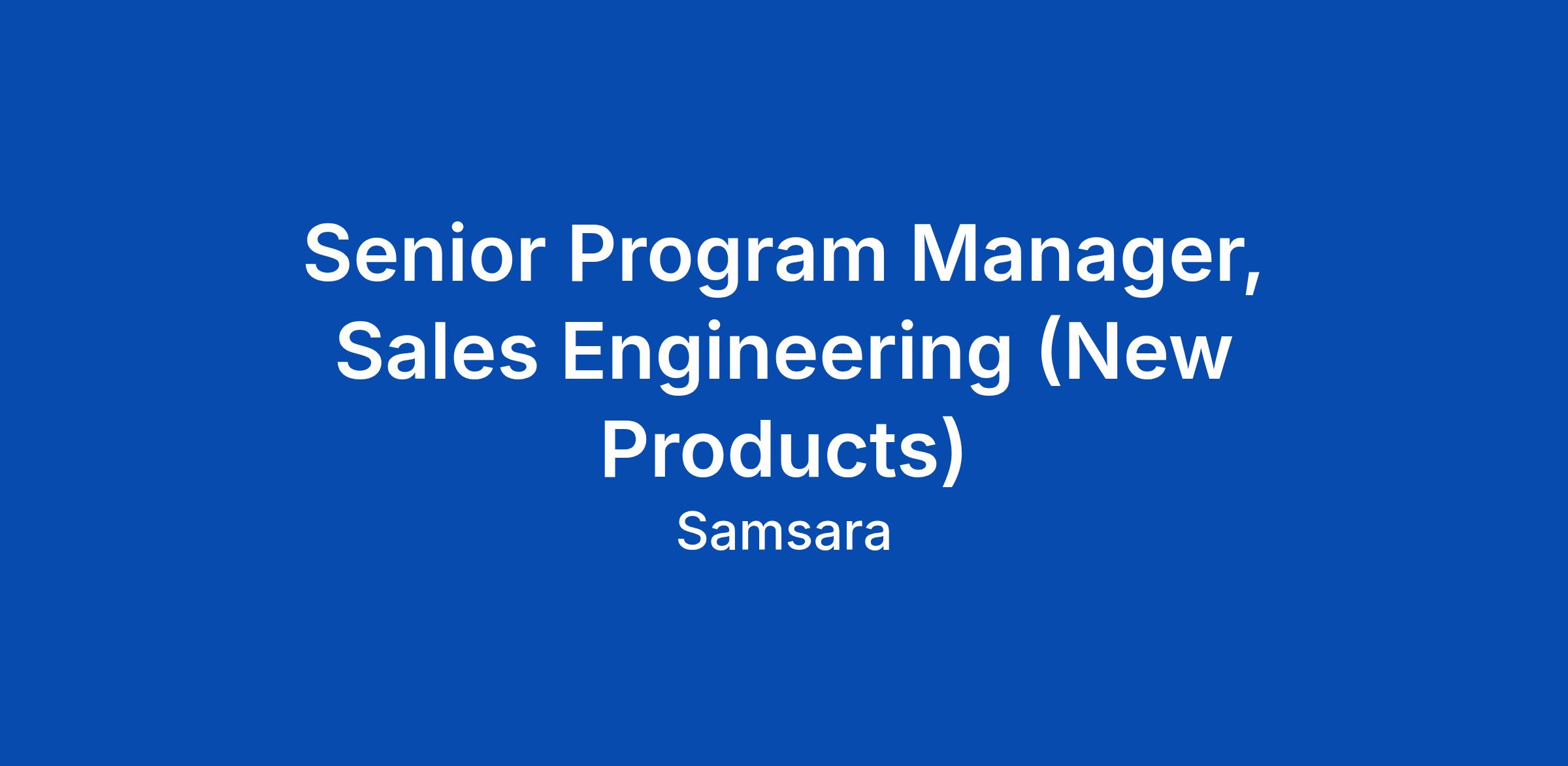 Senior Program Manager, Sales Engineering (New Products)