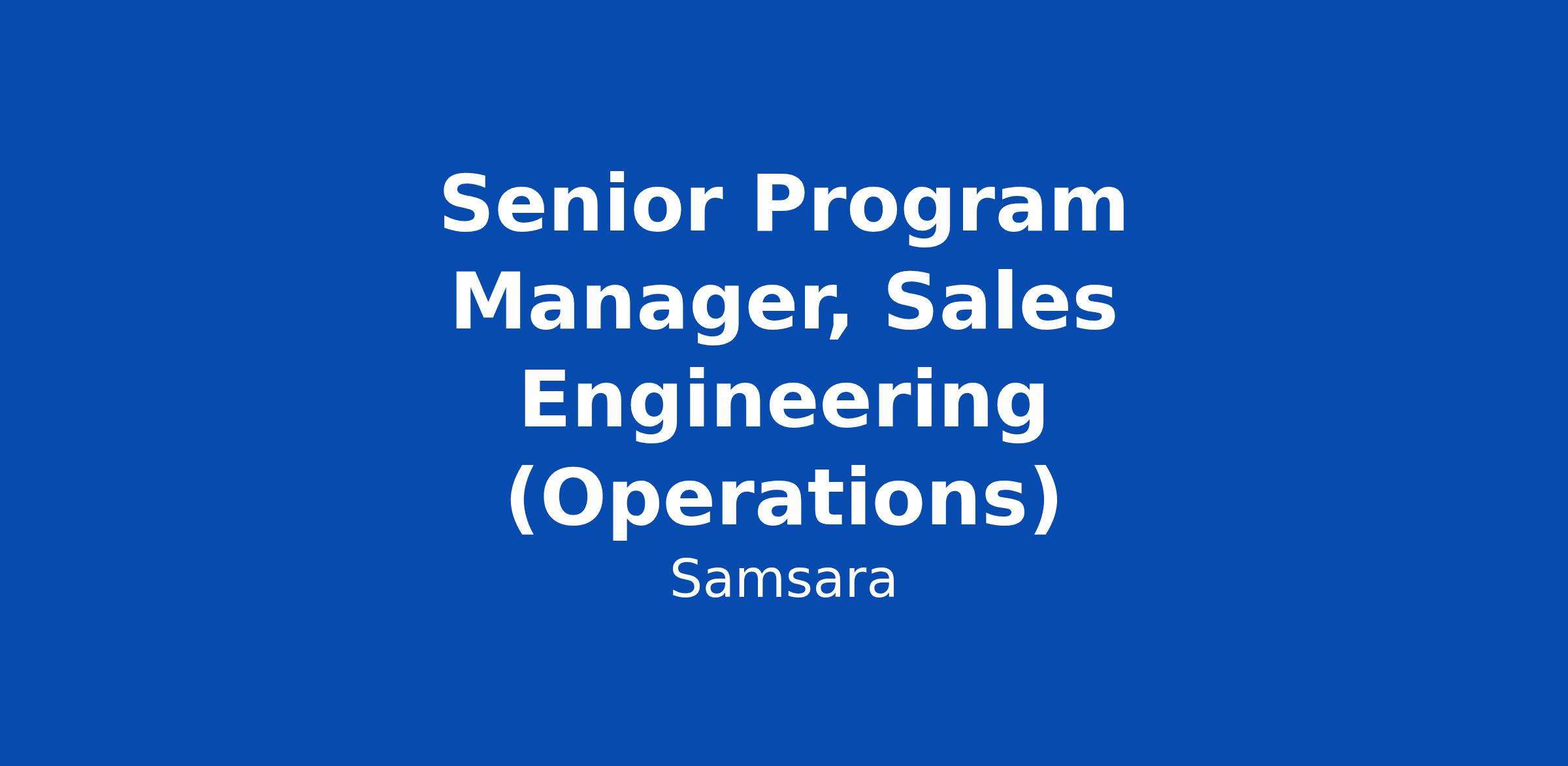 Senior Program Manager, Sales Engineering (Operations)