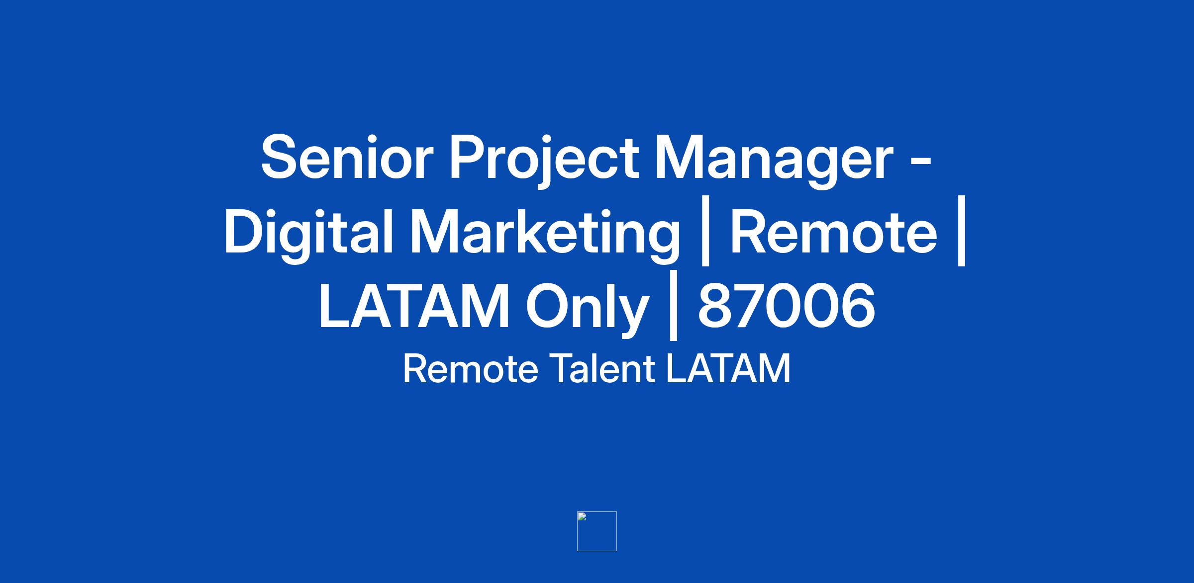 DescriptionRemote Talent LatAm is partnering with our client, a growing digital marketing company, to hire a Senior Project Manager to lead the project management function and drive operational excellence. This is a strategic leadership role, not just task management.