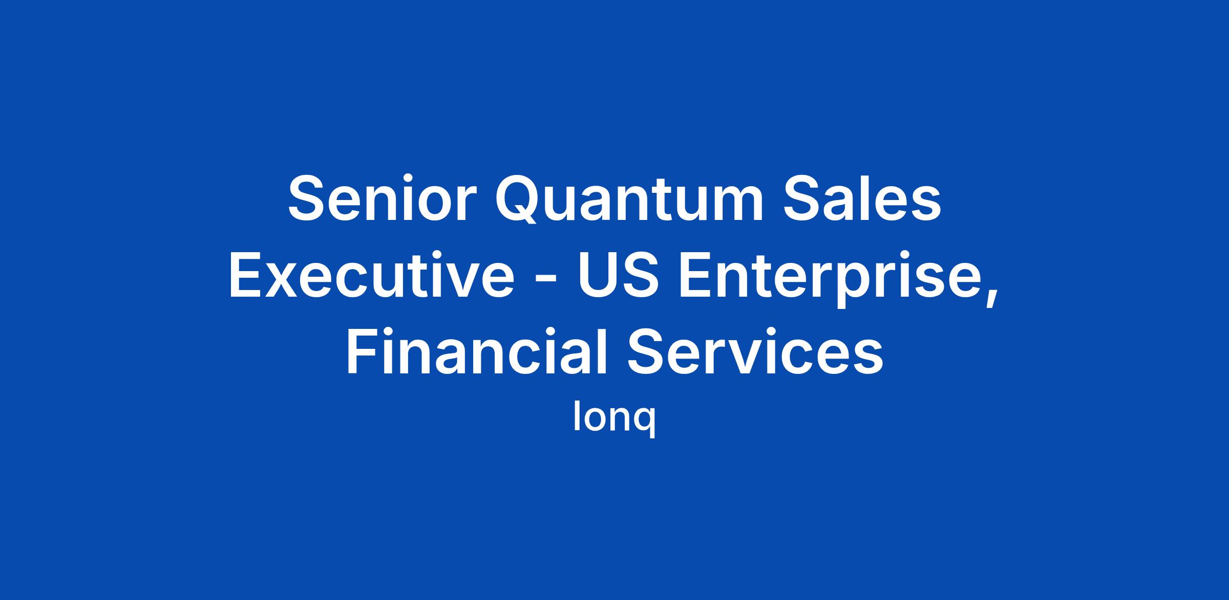 Senior Quantum Sales Executive - US Enterprise, Financial Services