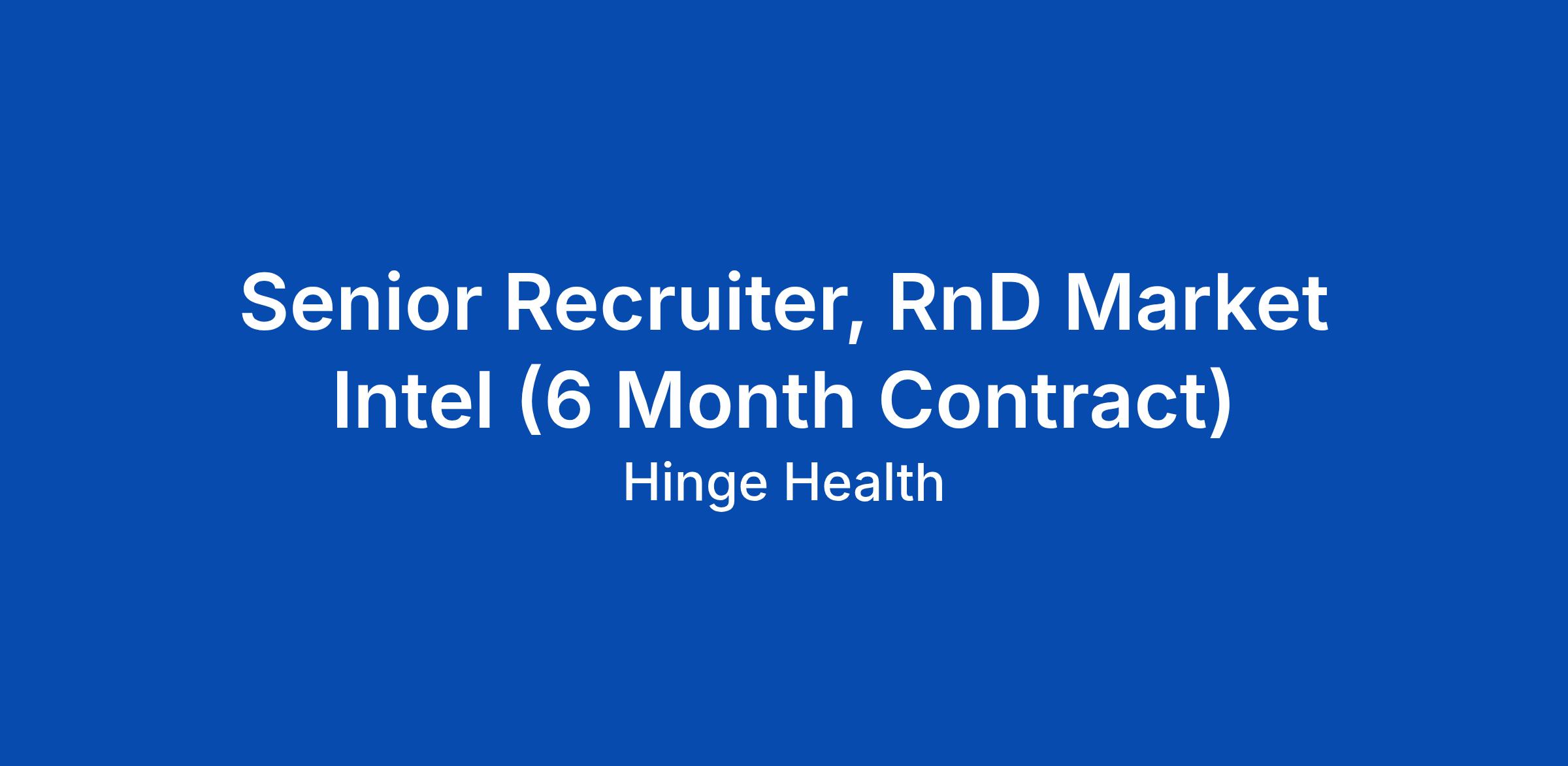 Senior Recruiter, RnD Market Intel (6 Month Contract)