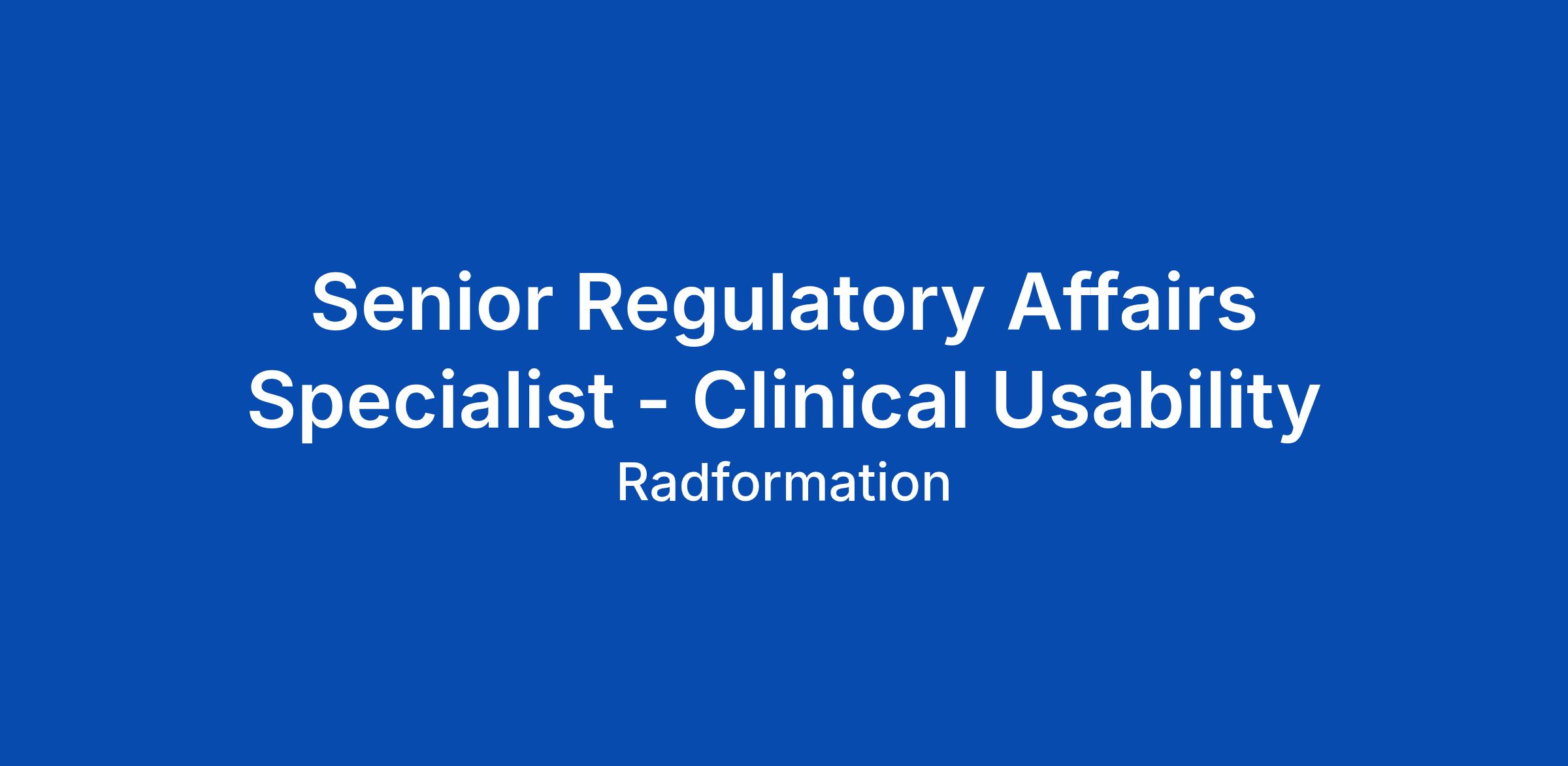 Senior Regulatory Affairs Specialist - Clinical Usability