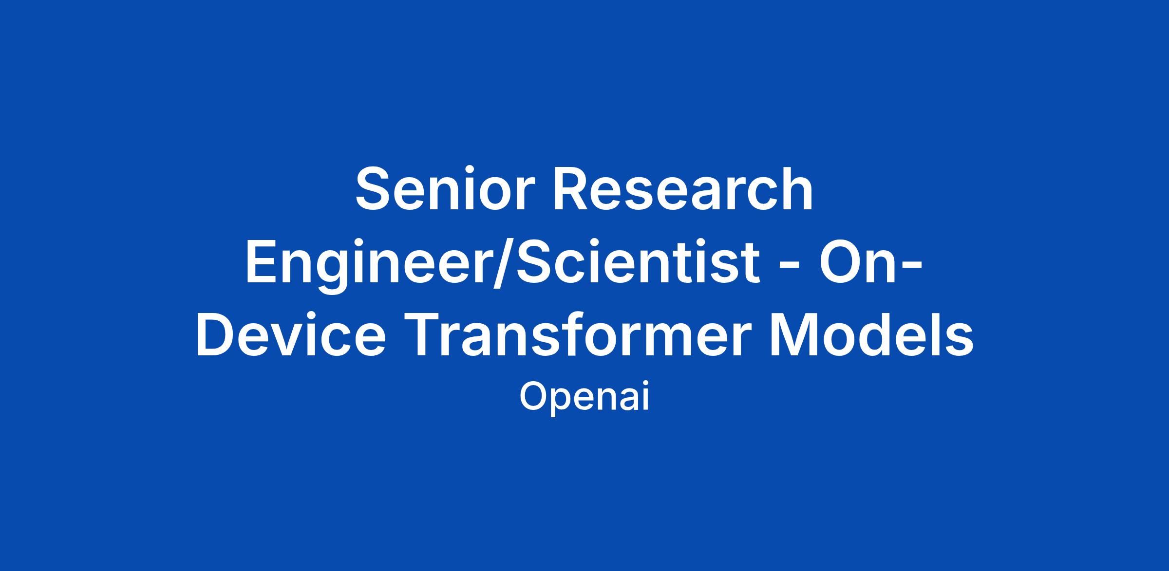 Senior Research Engineer/Scientist - On-Device Transformer Models