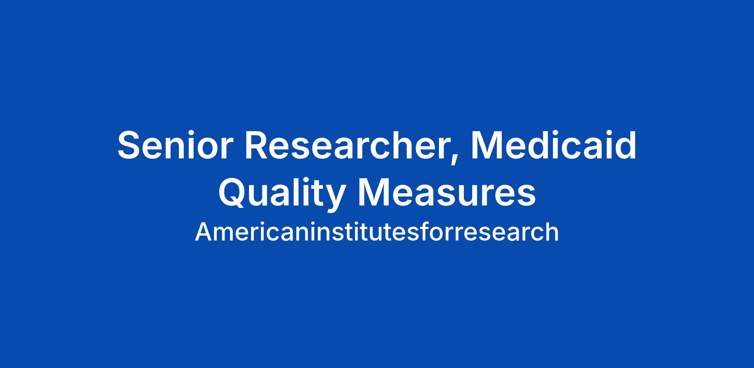 Senior Researcher, Medicaid Quality Measures