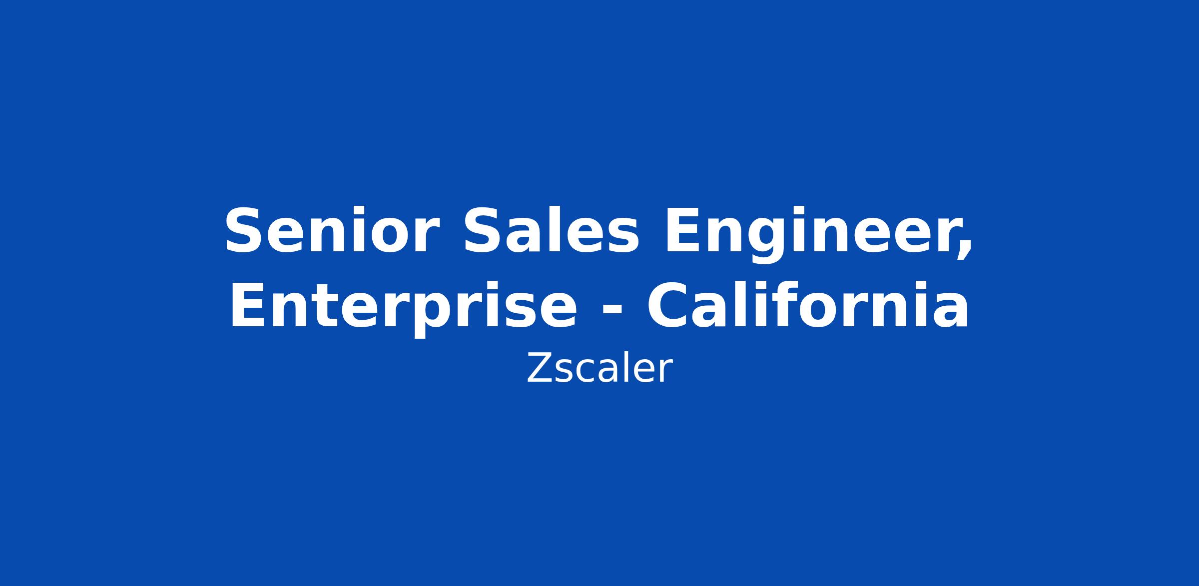 Senior Sales Engineer, Enterprise - California