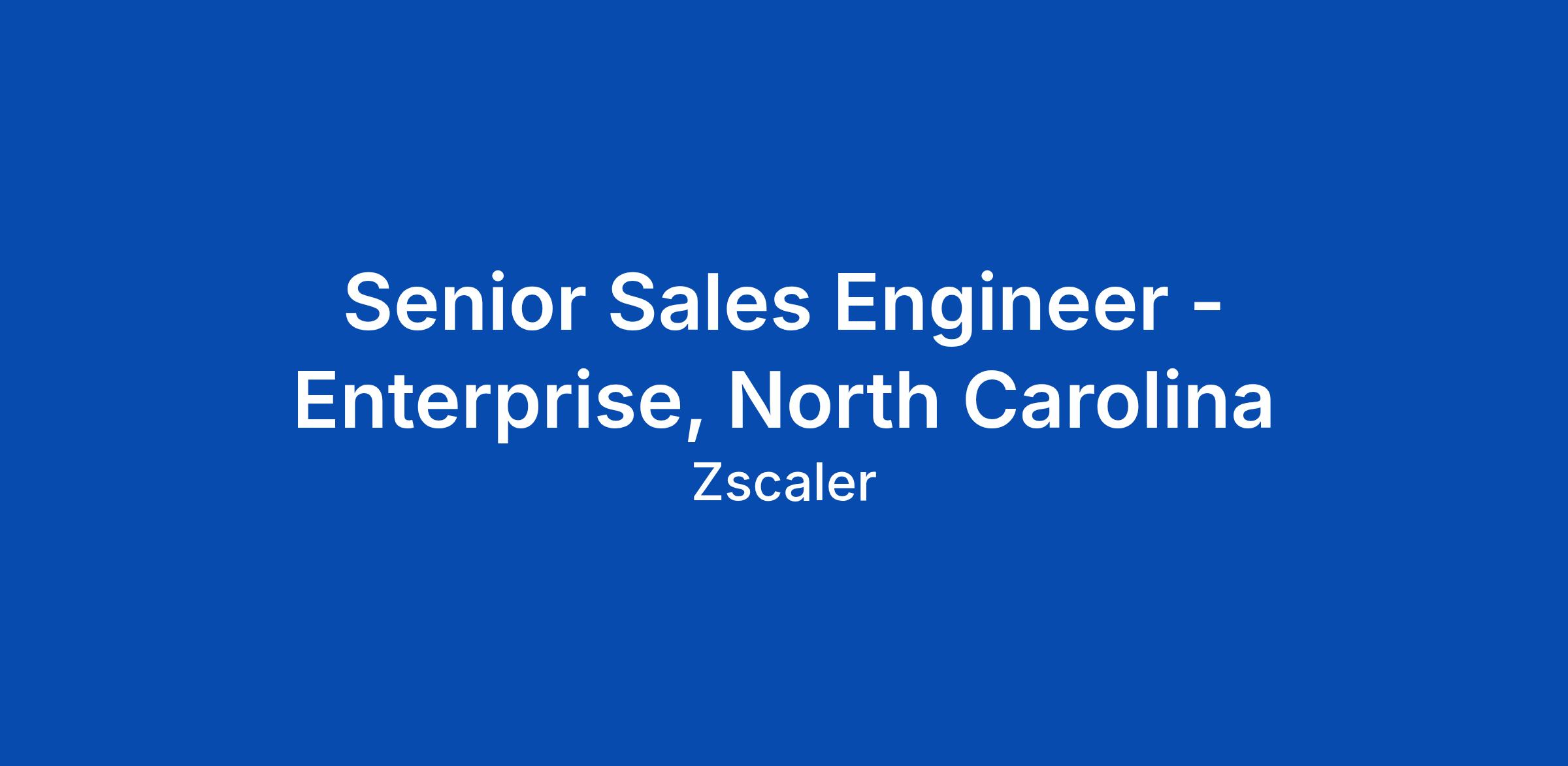 Senior Sales Engineer - Enterprise, North Carolina