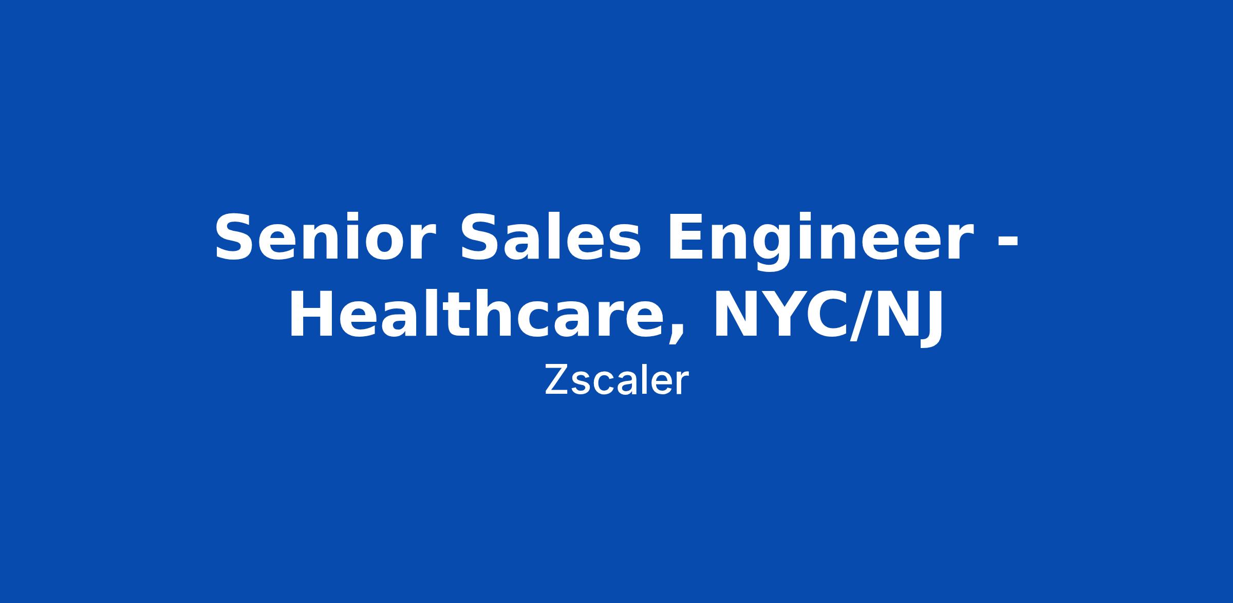 Senior Sales Engineer - Healthcare, NYC/NJ