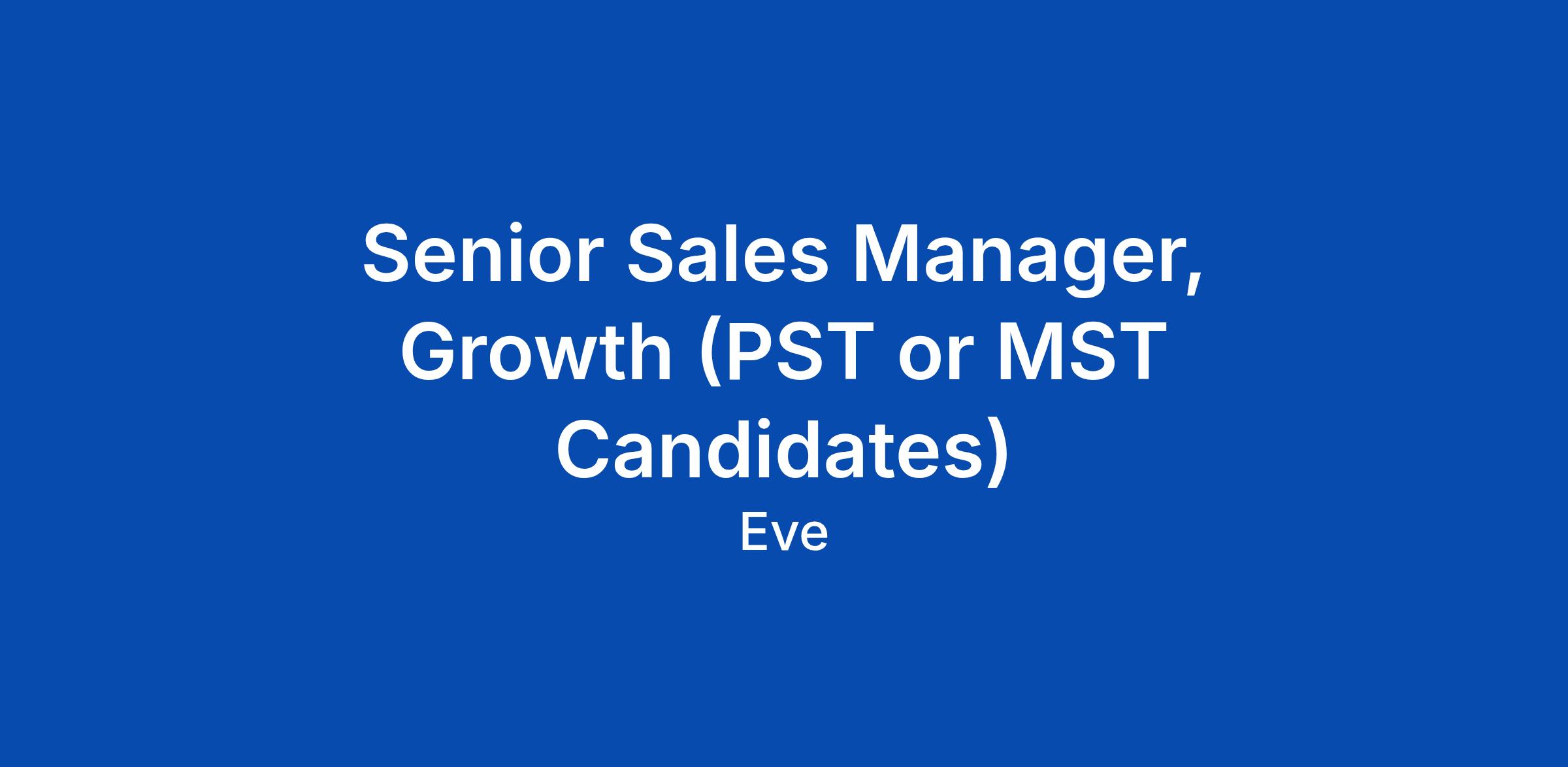 Senior Sales Manager, Growth (PST or MST Candidates)