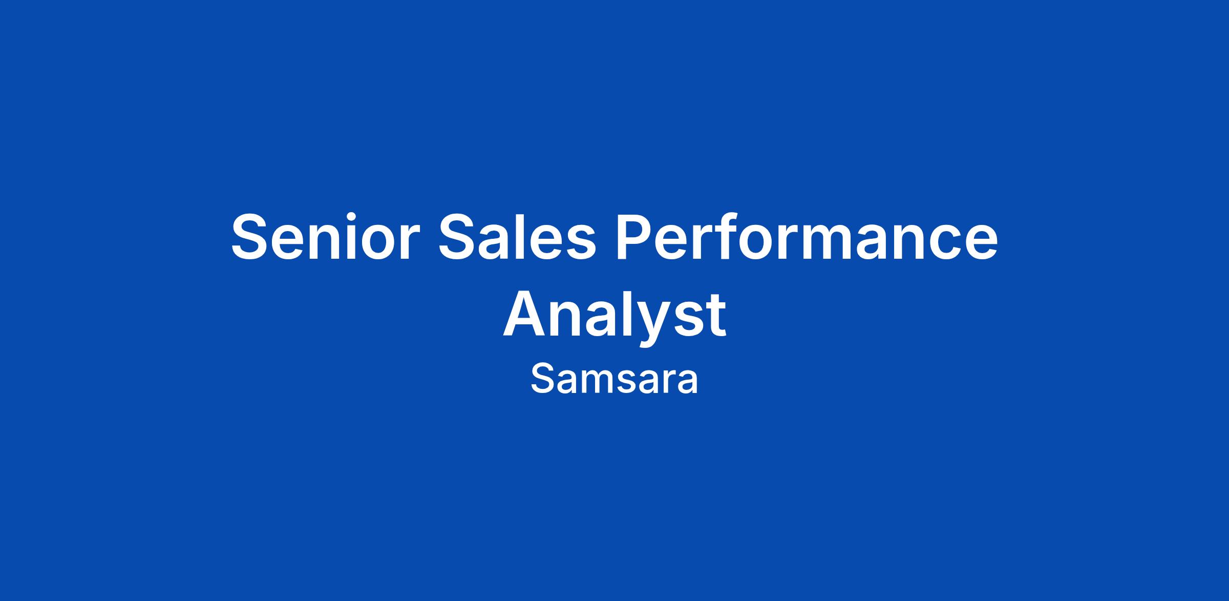 Senior Sales Performance Analyst