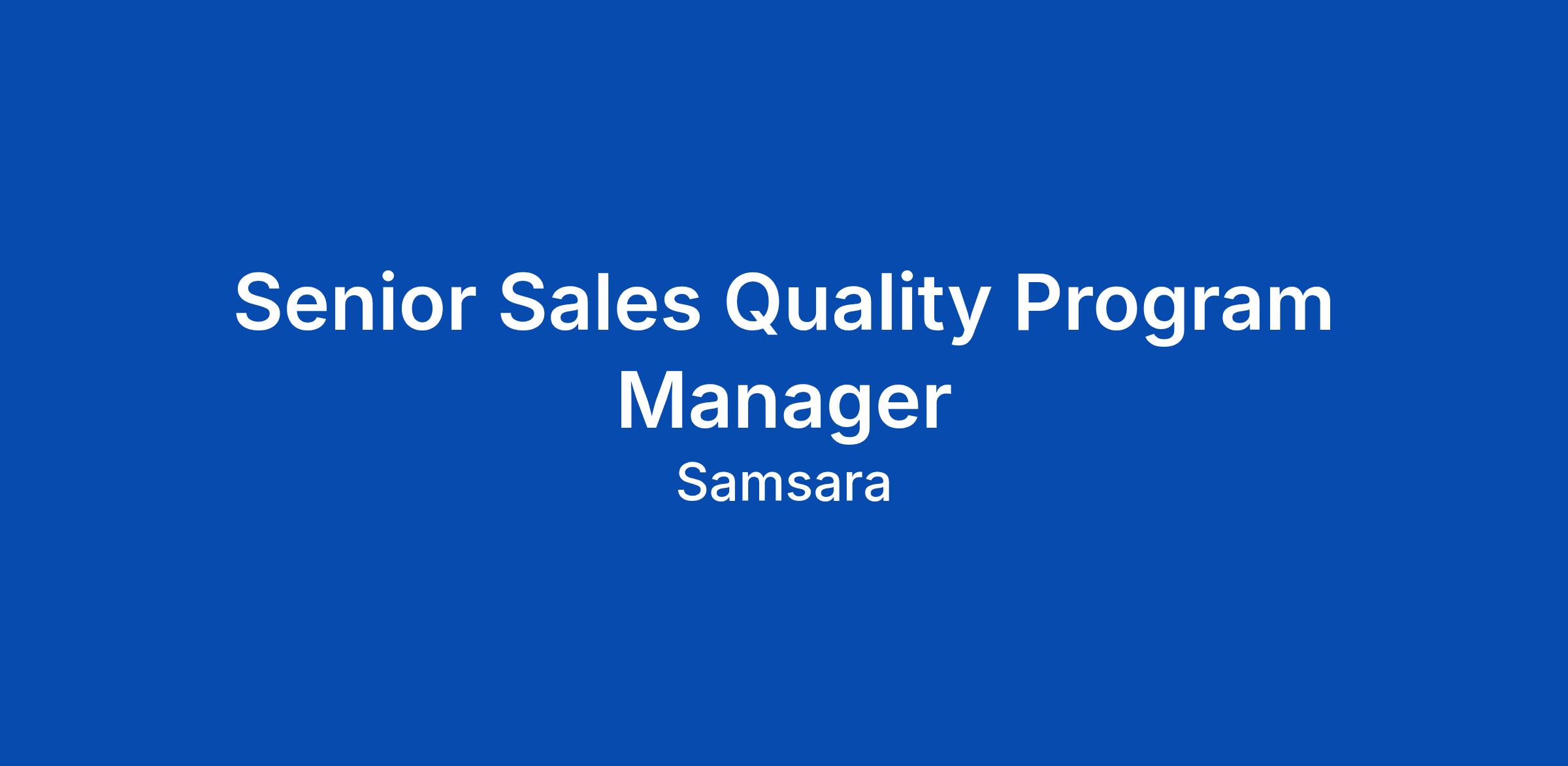 Senior Sales Quality Program Manager