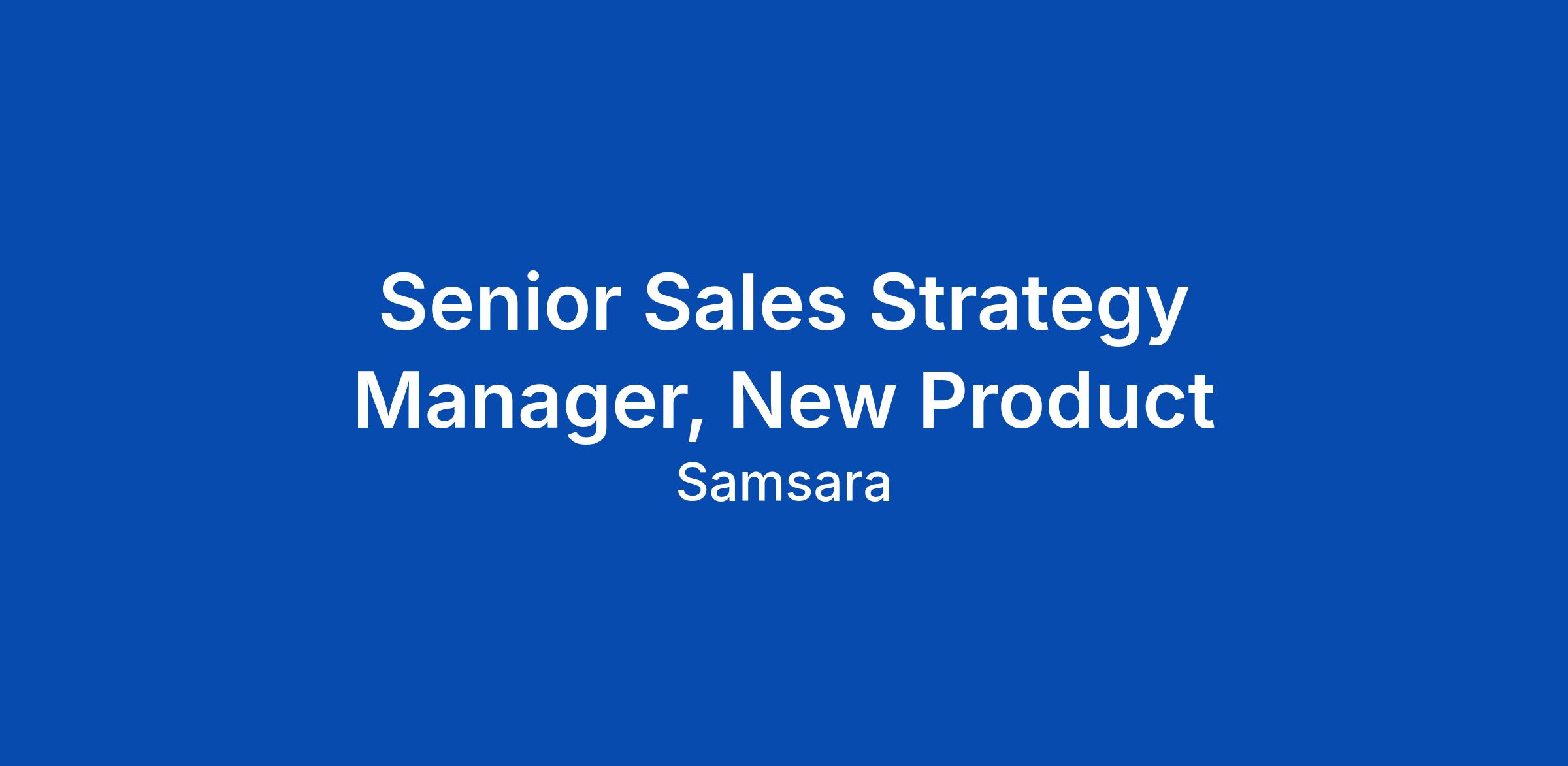 Senior Sales Strategy Manager, New Product