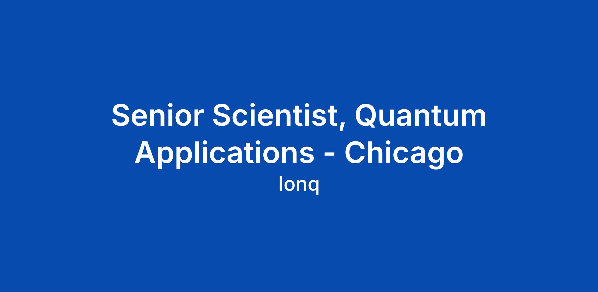 Senior Scientist, Quantum Applications - Chicago