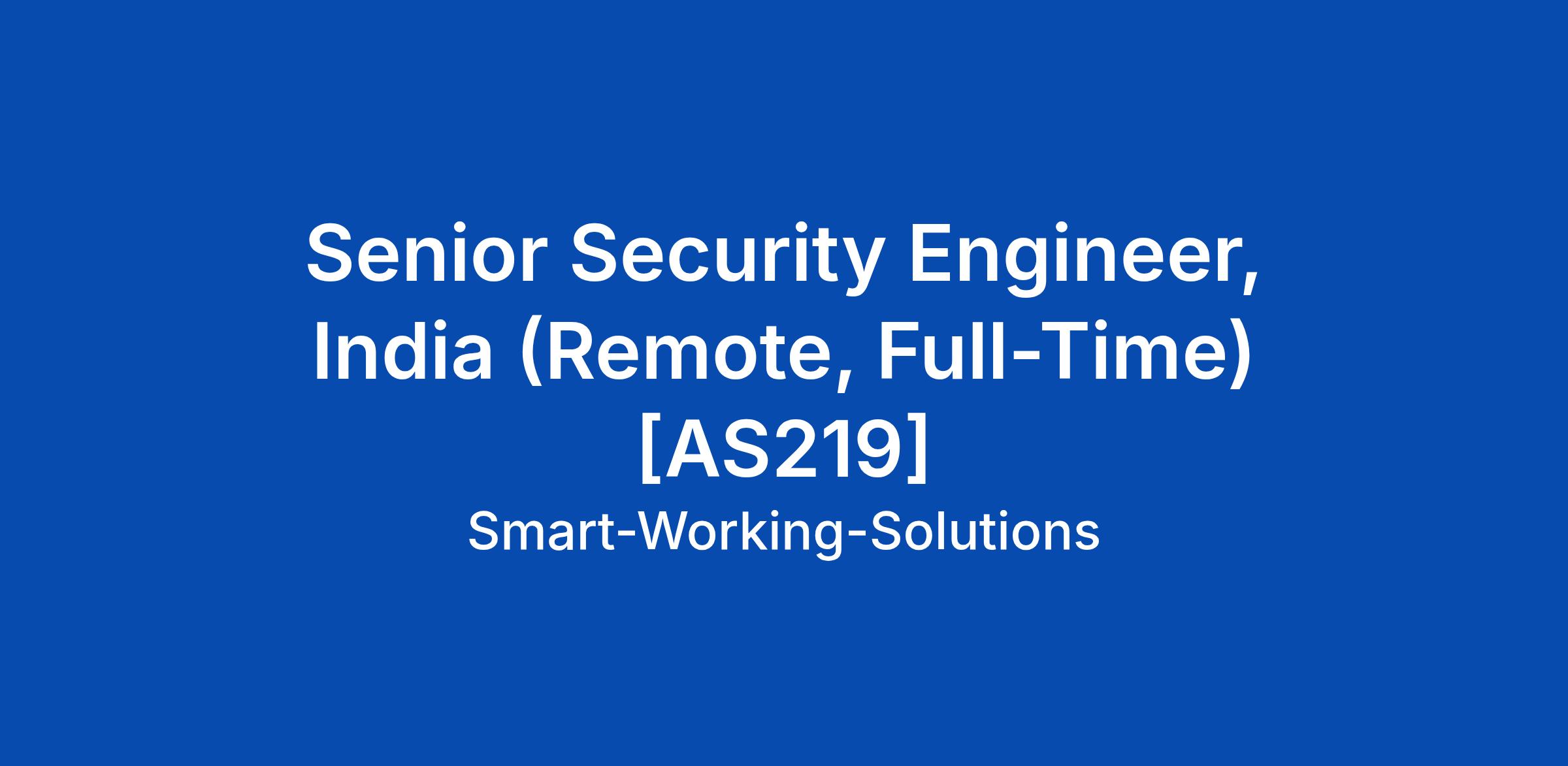 Senior Security Engineer, India (Remote, Full-Time) [AS219]