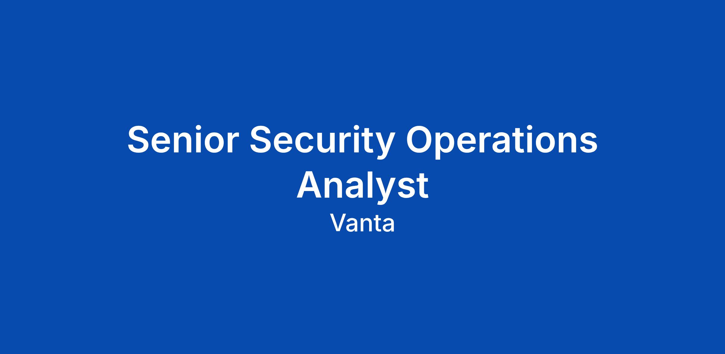 Senior Security Operations Analyst