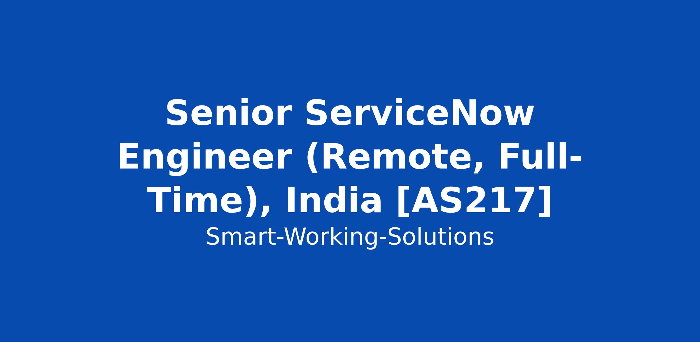 Senior ServiceNow Engineer (Remote, Full-Time), India [AS217]
