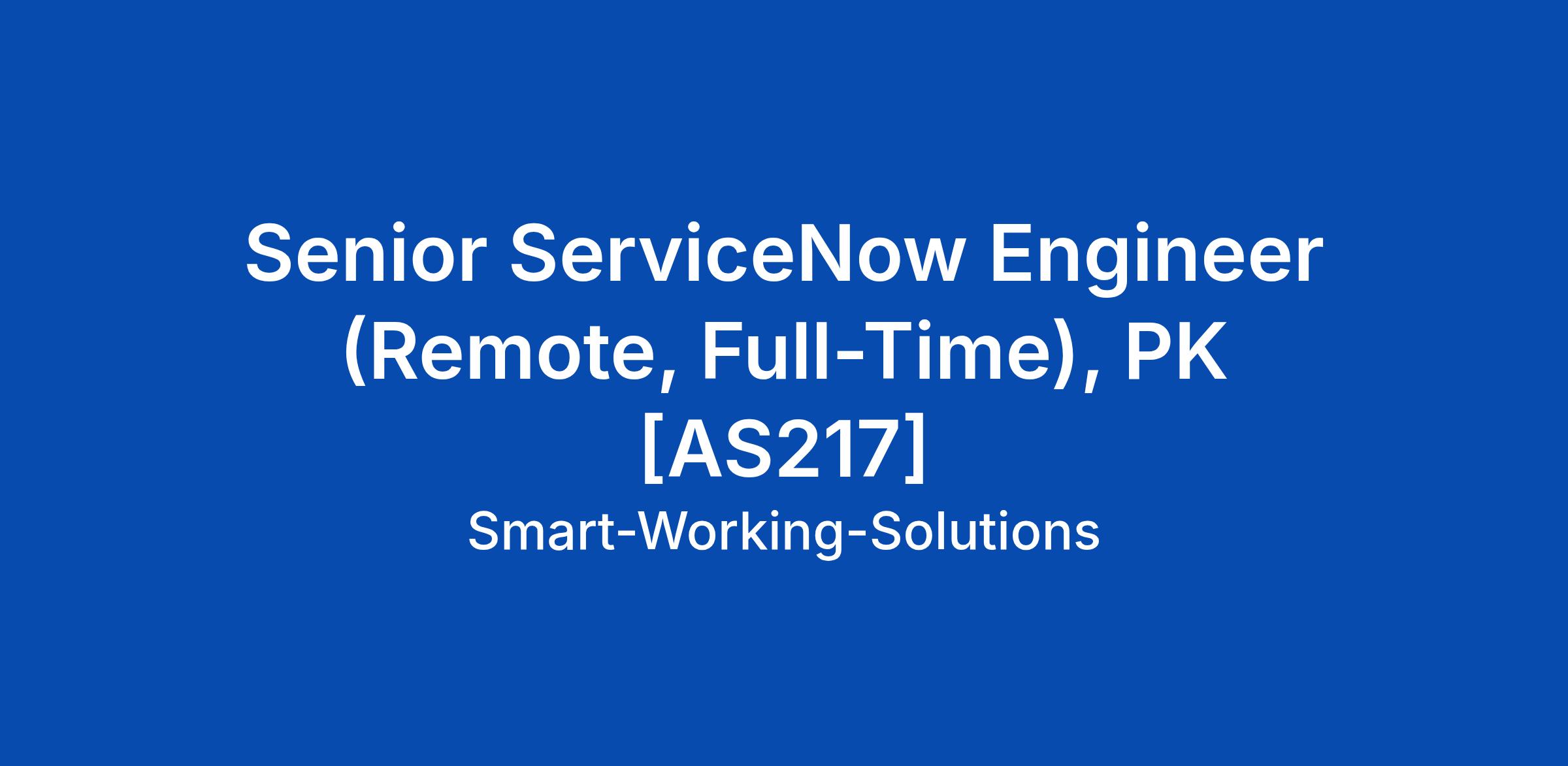 Senior ServiceNow Engineer (Remote, Full-Time), PK [AS217]