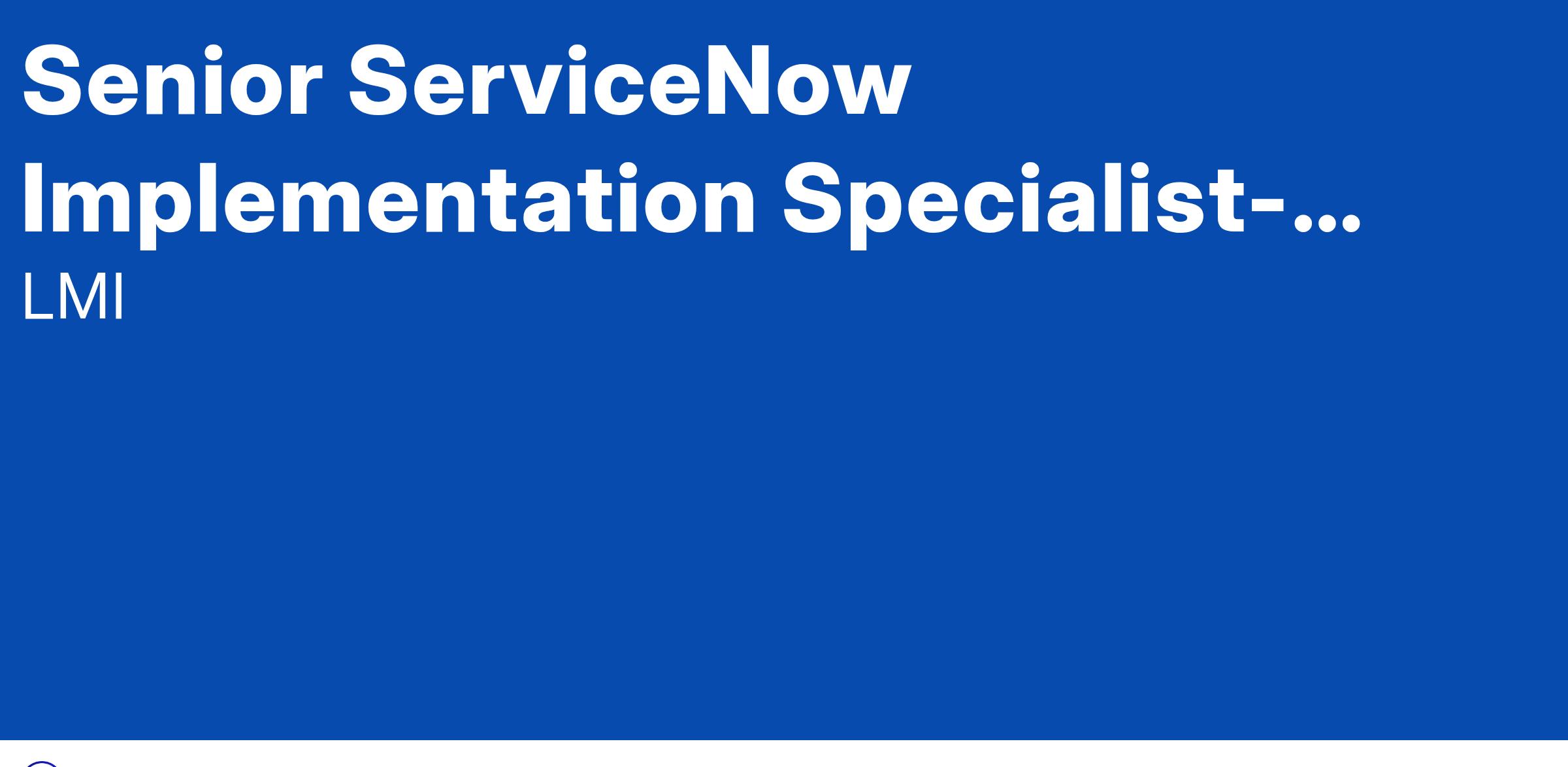 LMI is seeking a skilled Senior ServiceNow Implementation Specialist for a Federal DoD client. This is a fully remote position. A successful ServiceNow Implementation Specialist will demonstrate competency in ServiceNow, requirements analysis, critical thinking, and business growth while upholding the highest standard of ethical behavior.