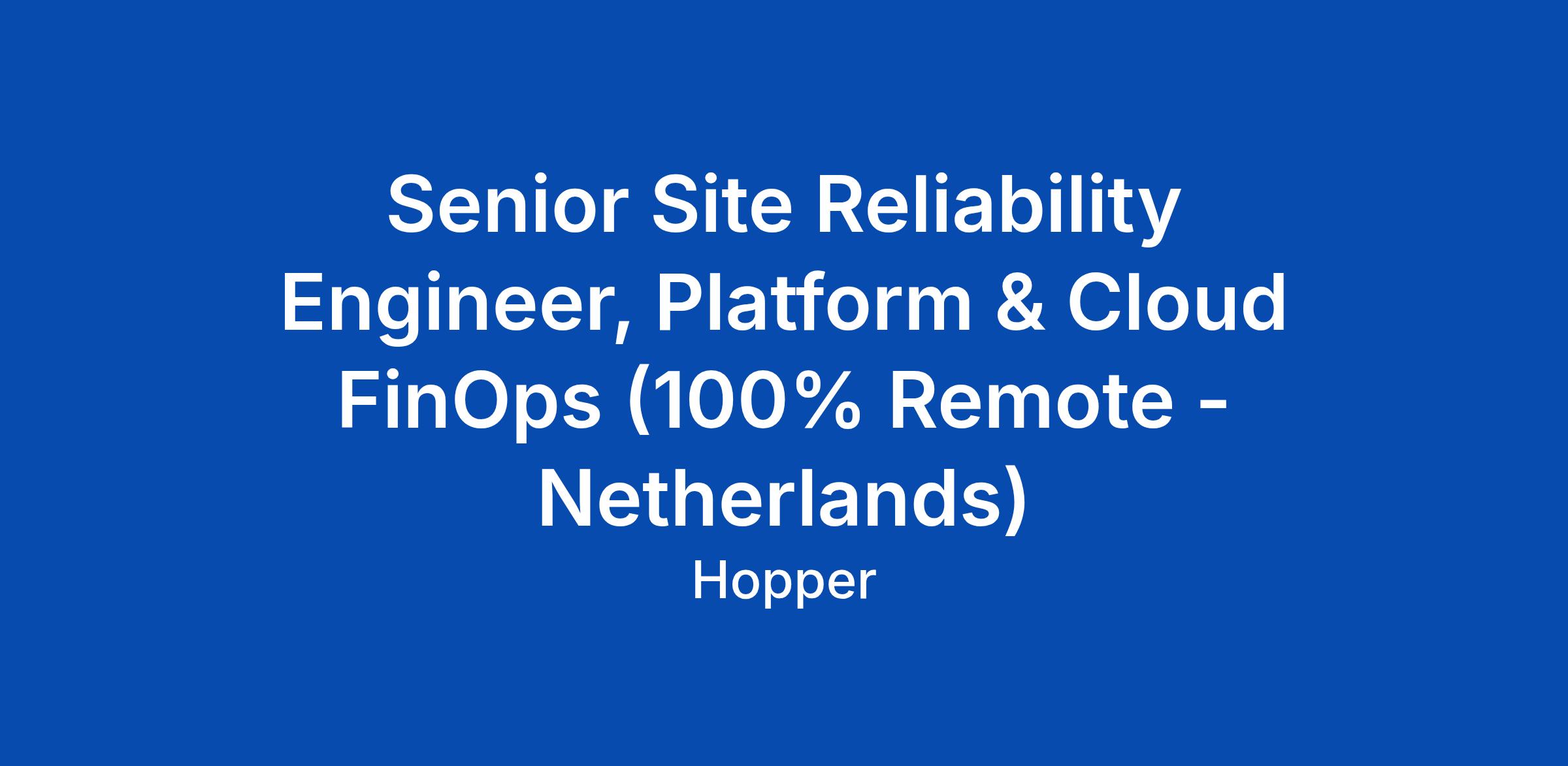 Senior Site Reliability Engineer, Platform & Cloud FinOps (100% Remote - Netherlands)