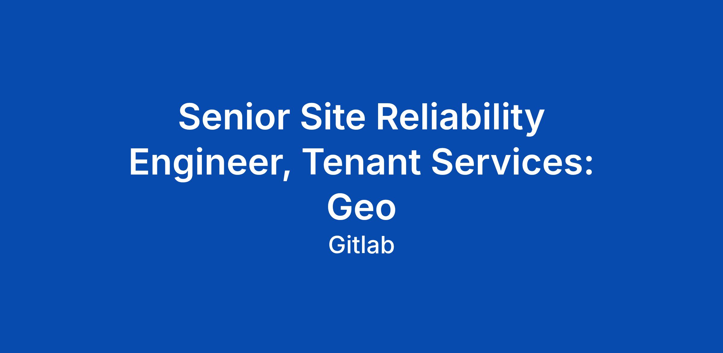 Senior Site Reliability Engineer, Tenant Services: Geo