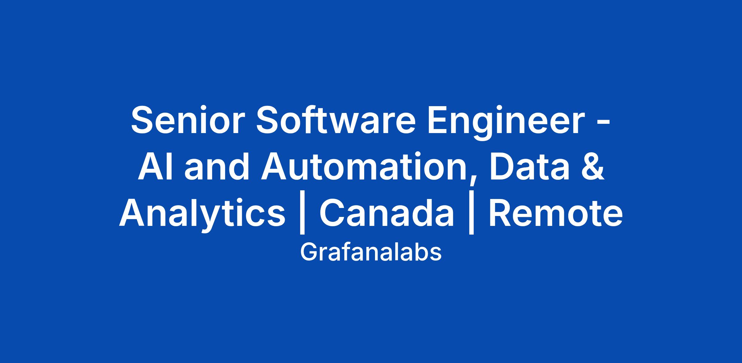 Senior Software Engineer - AI and Automation, Data & Analytics | Canada | Remote