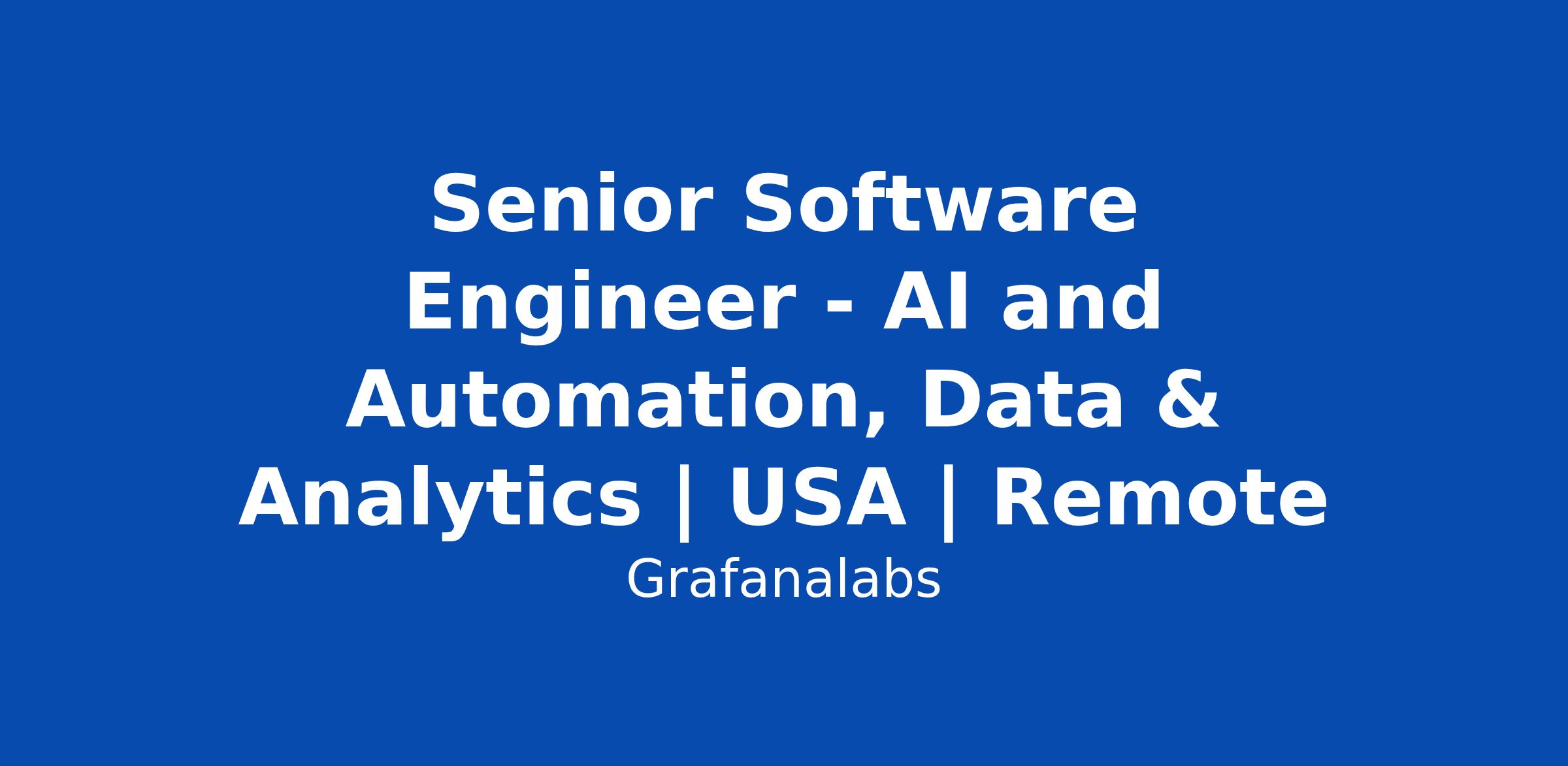 Senior Software Engineer - AI and Automation, Data & Analytics | USA | Remote