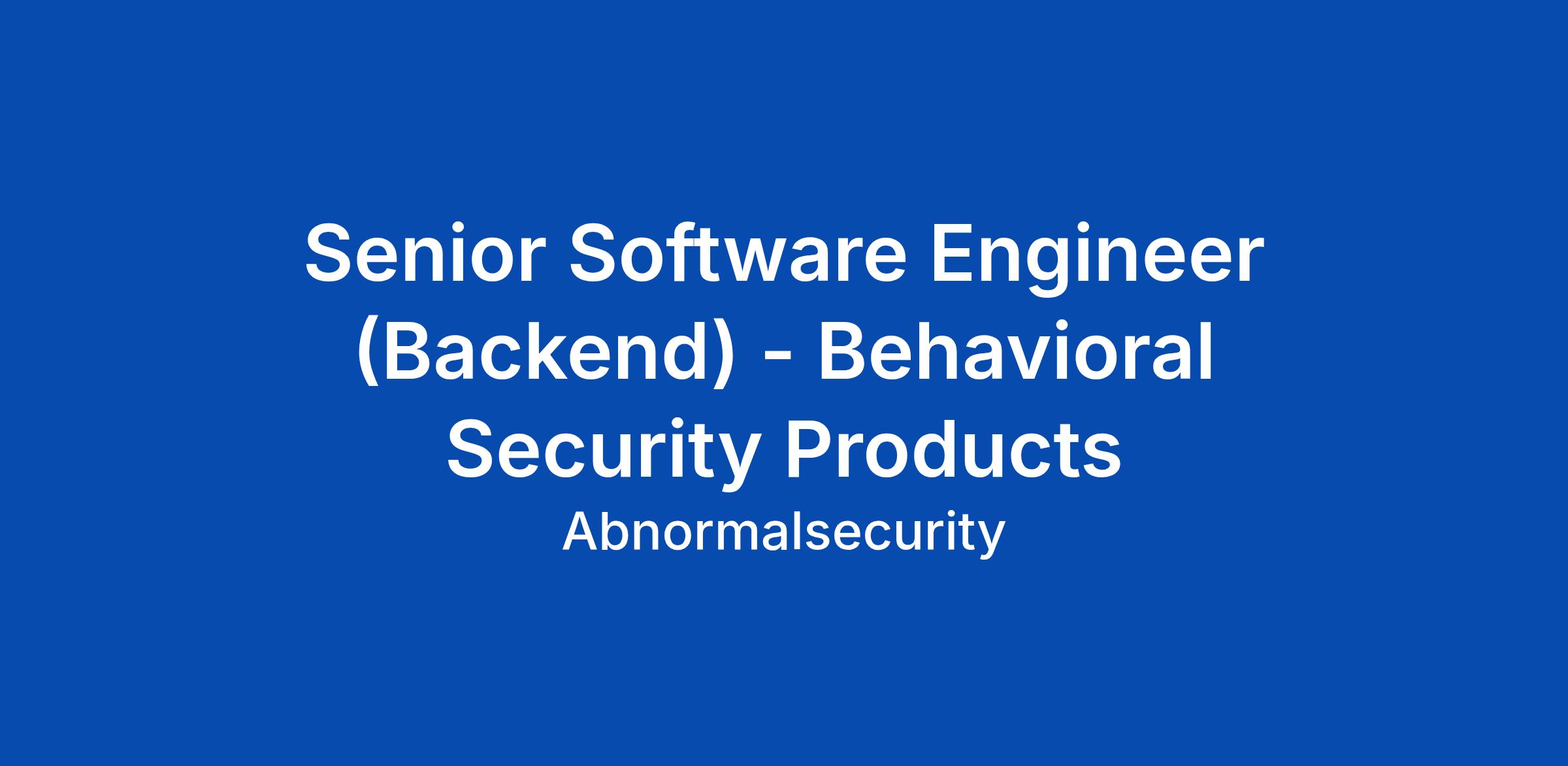 Senior Software Engineer (Backend) - Behavioral Security Products
