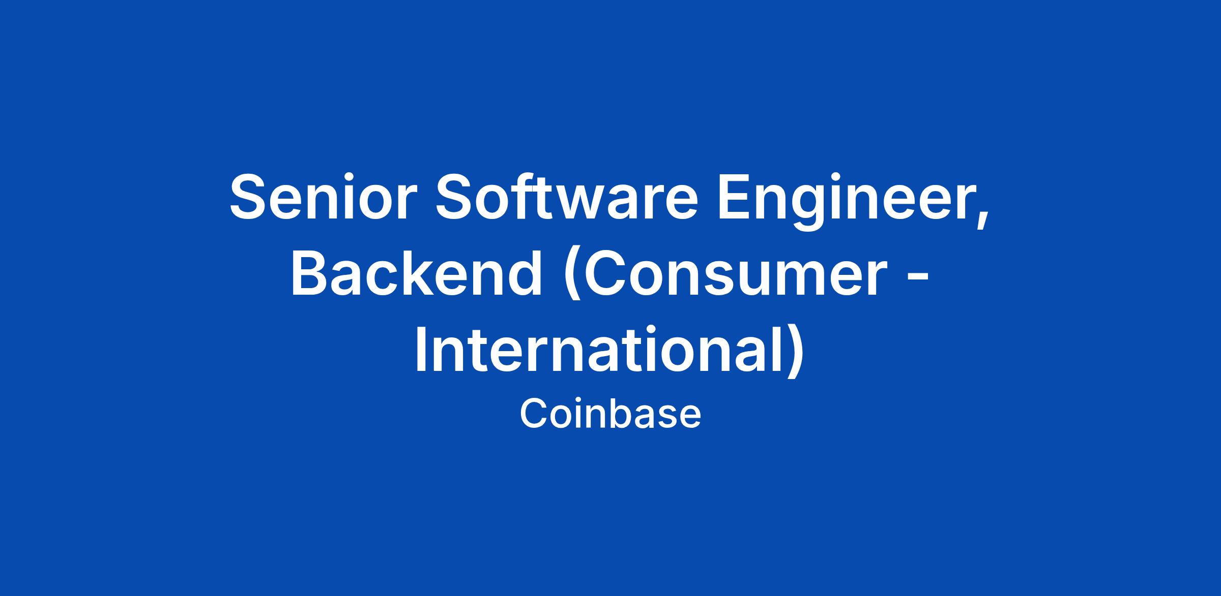 Senior Software Engineer, Backend (Consumer - International)