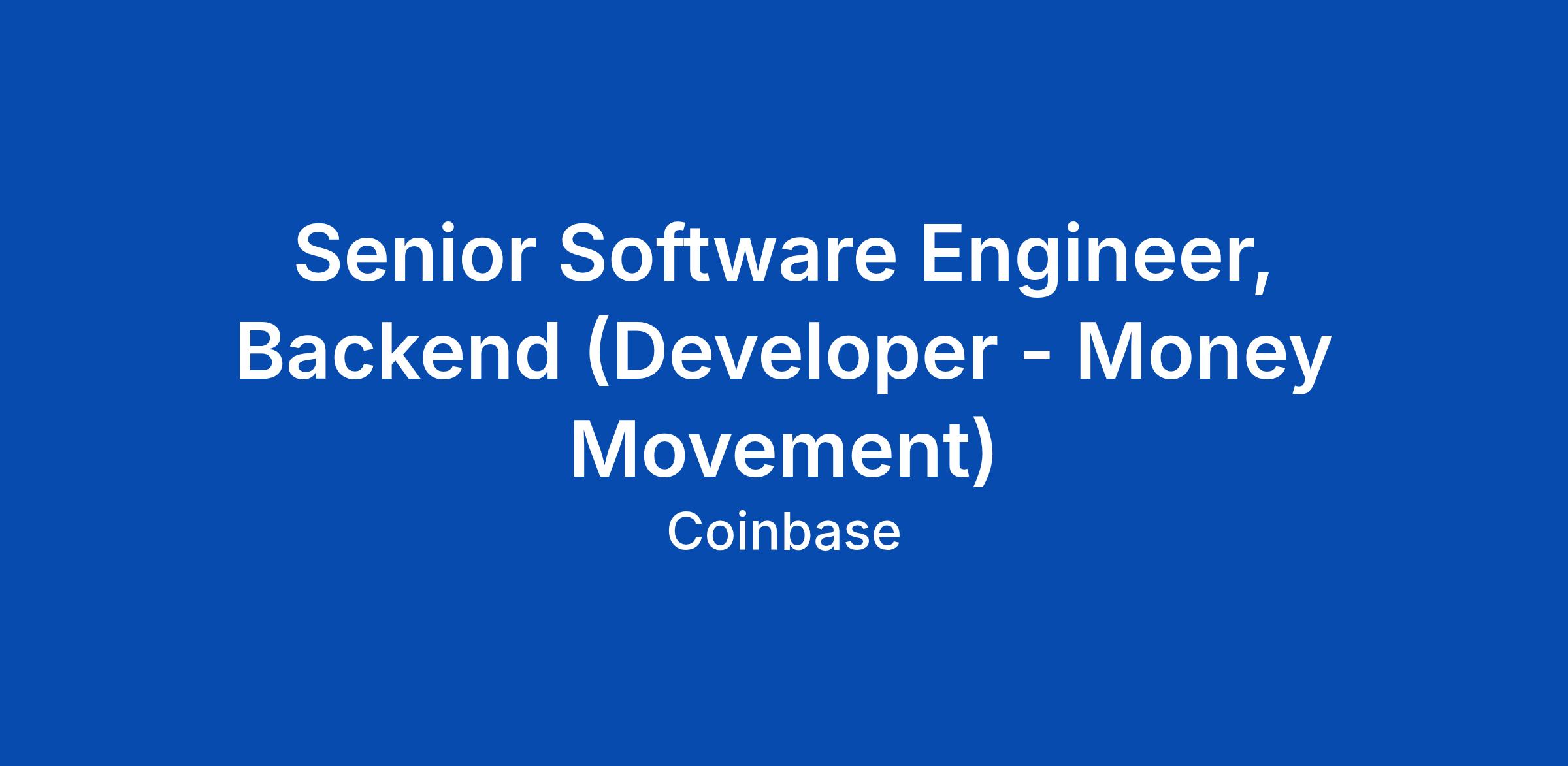 Senior Software Engineer, Backend (Developer - Money Movement)