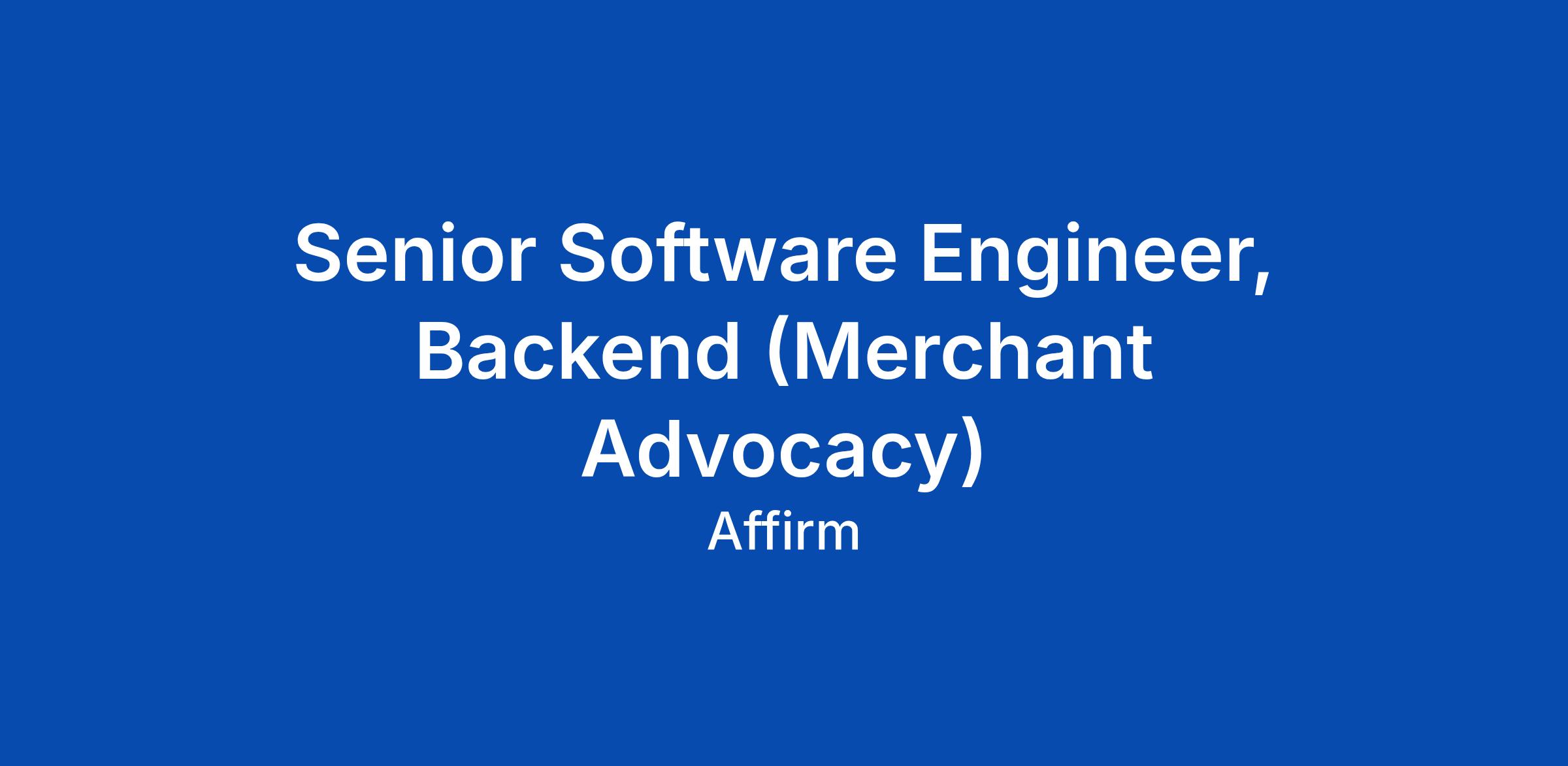 Senior Software Engineer, Backend (Merchant Advocacy)