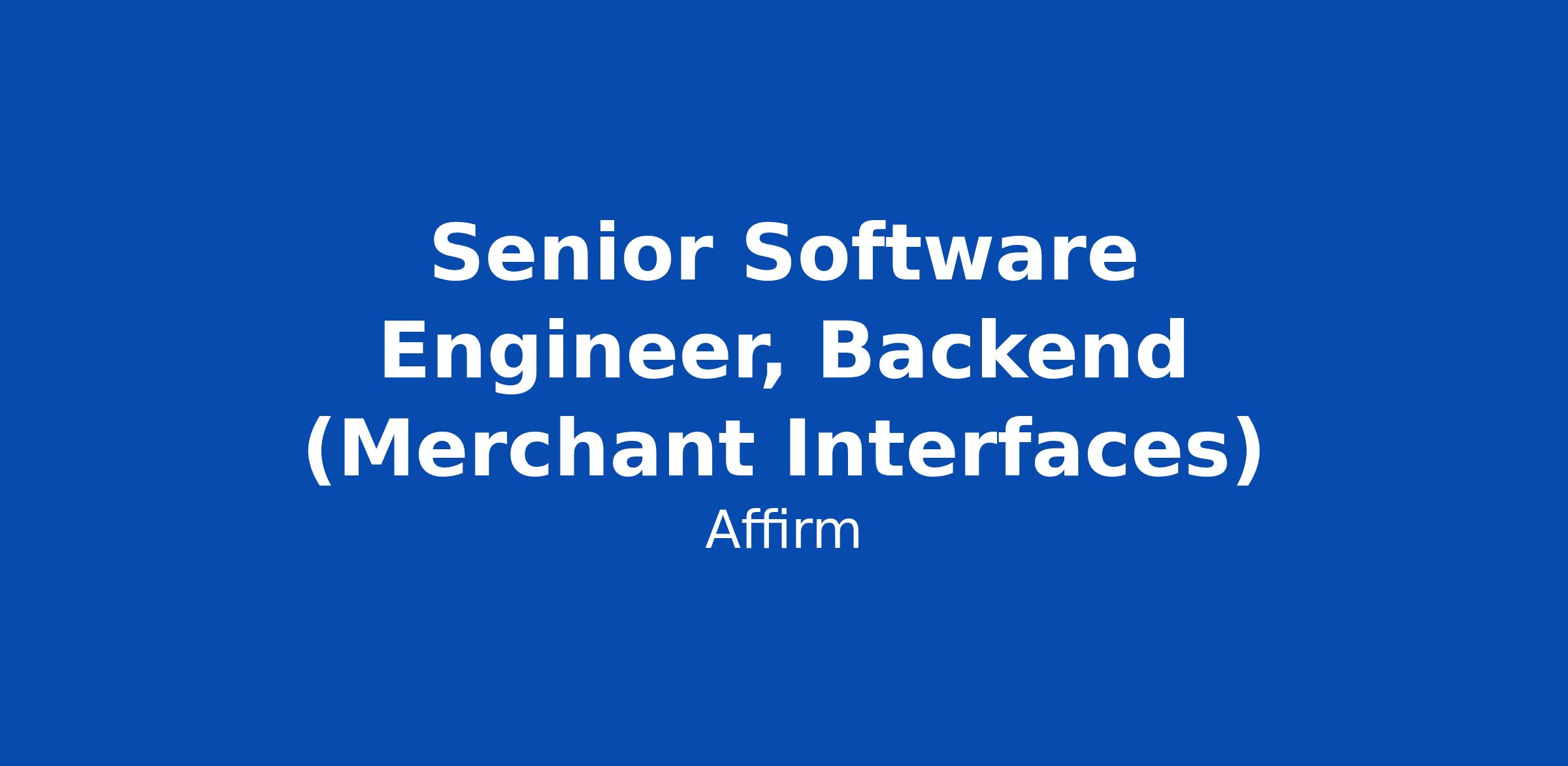 Senior Software Engineer, Backend (Merchant Interfaces)