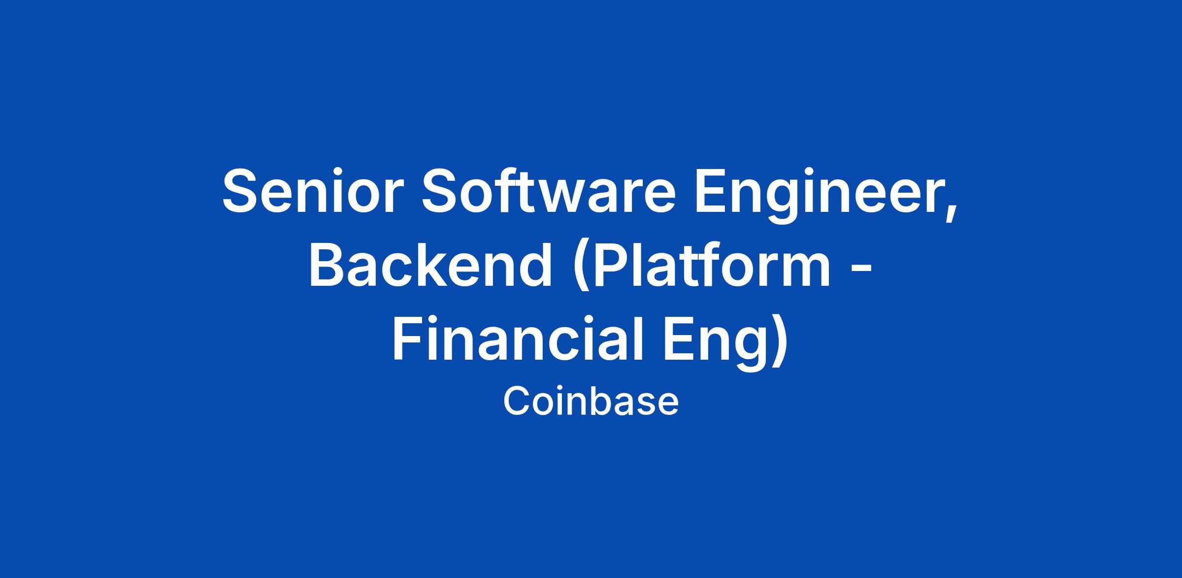 Senior Software Engineer, Backend (Platform - Financial Eng)