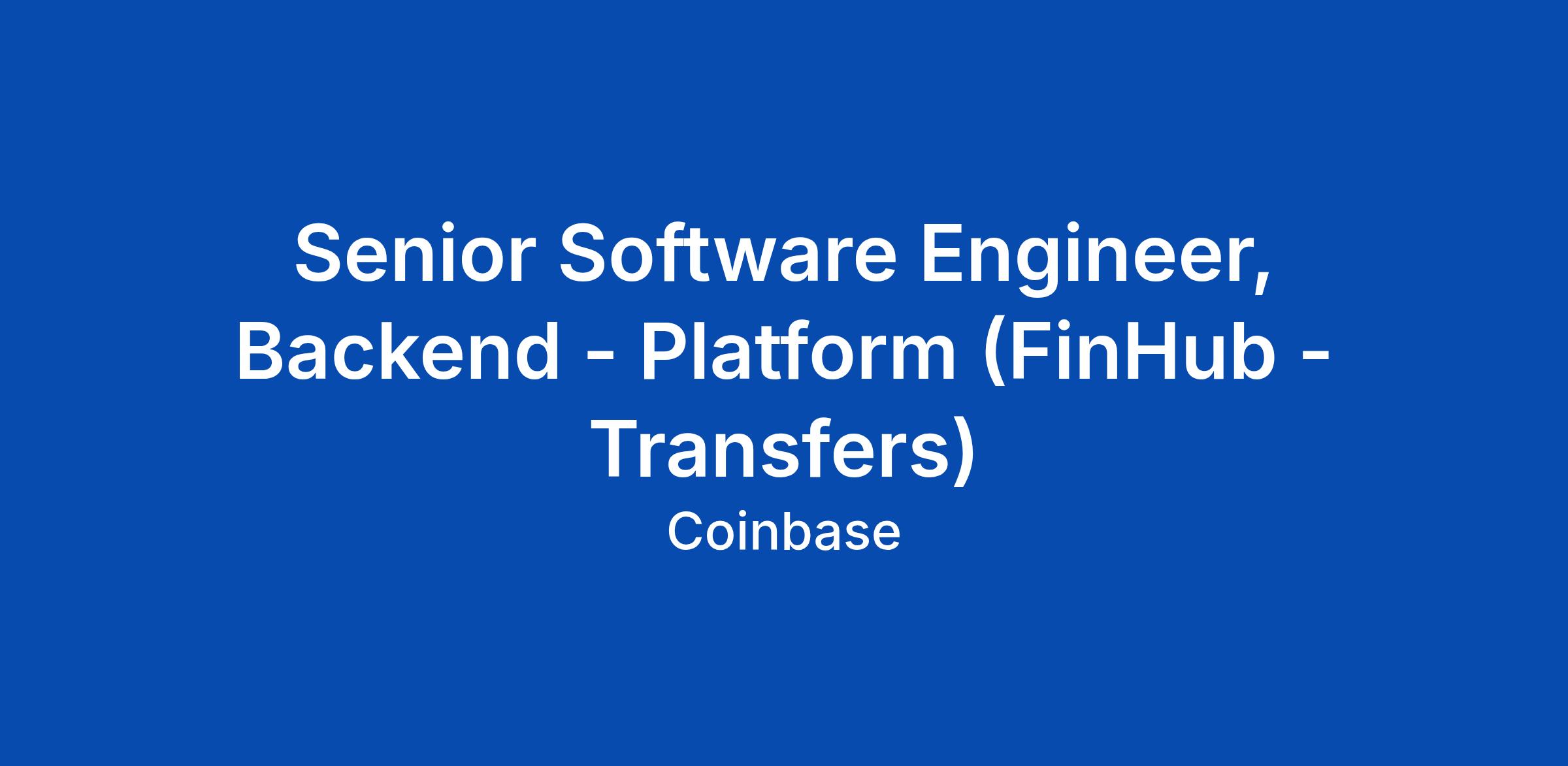 Senior Software Engineer, Backend - Platform (FinHub - Transfers)