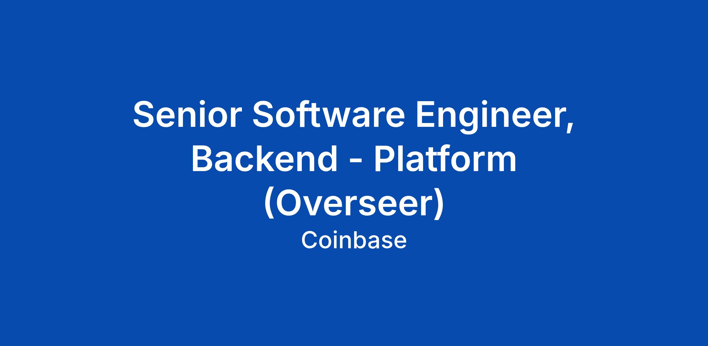 Senior Software Engineer, Backend - Platform (Overseer)