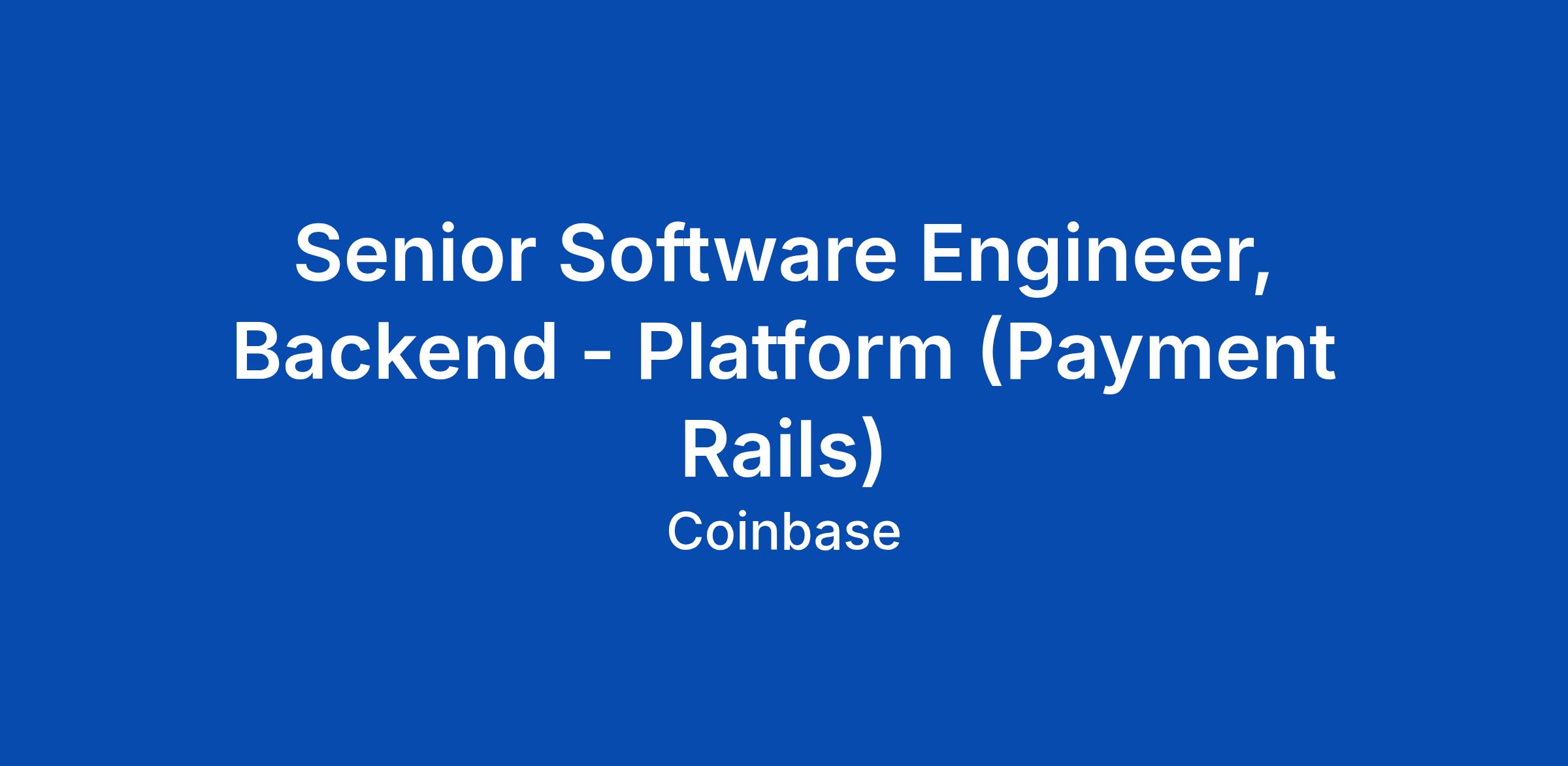 Senior Software Engineer, Backend - Platform (Payment Rails)
