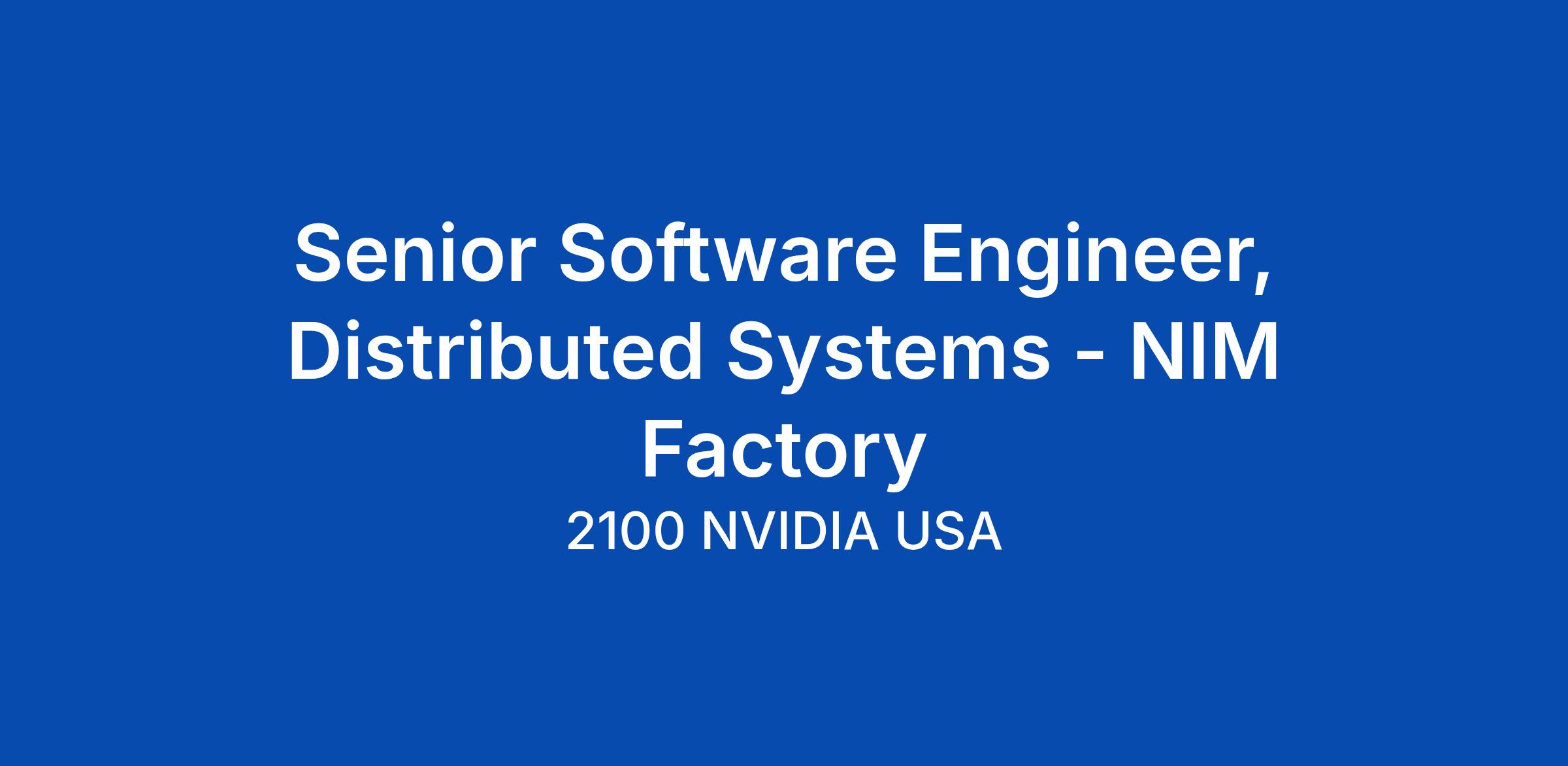 NVIDIA is the platform upon which every new AI-powered application is built. We are seeking a senior engineer to design and build factory infrastructure and automation for NVIDIA Inference Microservices (NIMs). The right person for this role brings technical drive and creativity to change the way NVIDIA optimizes and serves performant inferencing for every AI model in a heterogeneous cluster environments. Our NIM offerings are easy to use, highly performant and tested in all deployment scenarios, in the cloud, on customerβs self-hosted infrastructure and locally on all NVIDIA GPUs. You will apply your deep technical expertise to design an efficient, scalable and reliable automation factory infrastructure that will take AI models to become NIMs that are validated for best in class performance and accuracy.