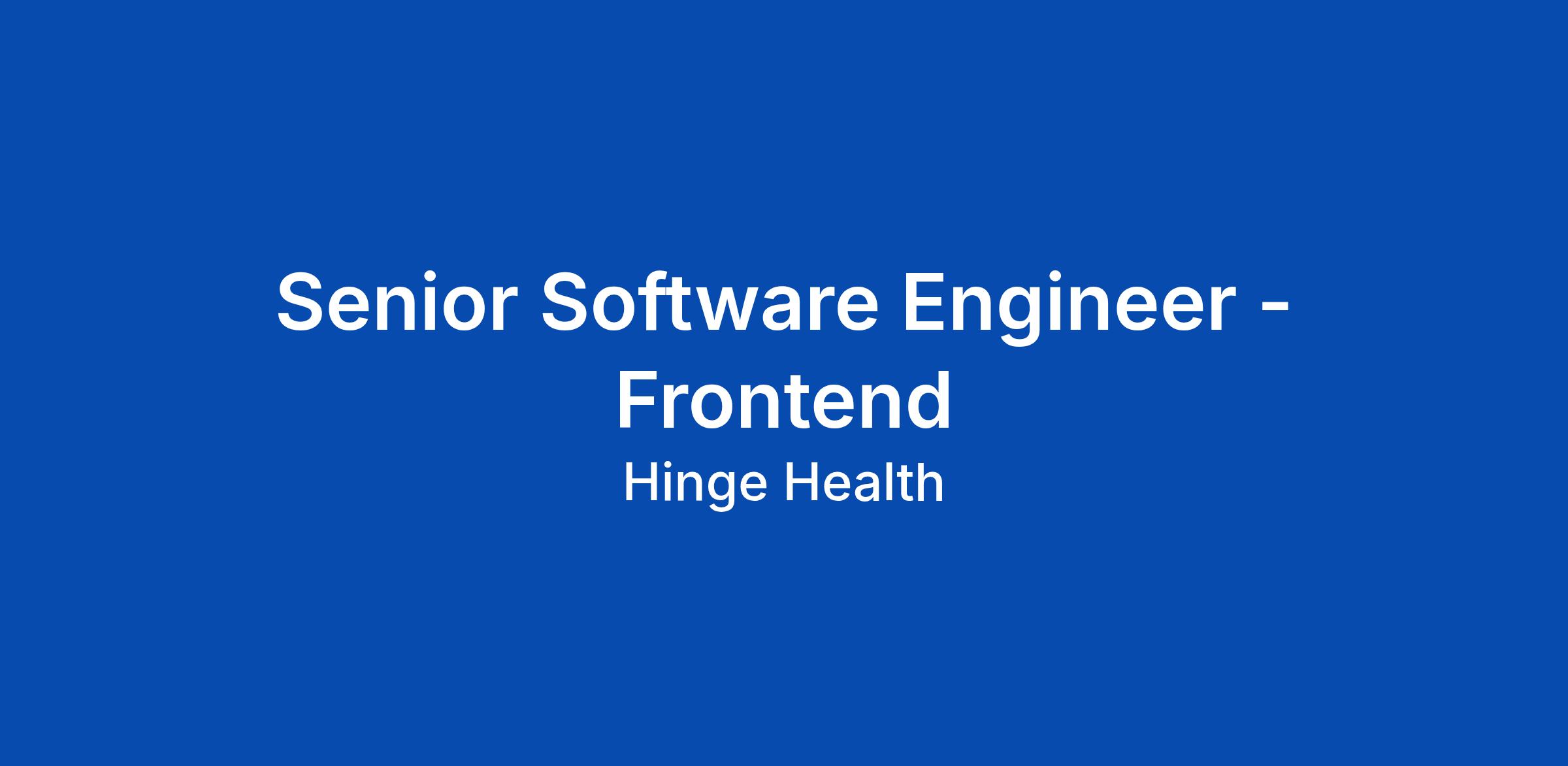 About the Role As a Senior Software Engineer at Hinge Health, you will play a pivotal role in designing, building, and maintaining large-scale software solutions that directly impact our membersβ health outcomes. You will collaborate with cross-functional partners, including product managers and designers, to deliver new product capabilities and improve the maintainability, availability, and performance of our features. This role is essential to advancing our mission of transforming joint and muscle care through technology, including the integration of AI-driven solutions to automate and enhance care delivery. Hinge Health software engineers work on small interdisciplinary teams focused on different parts of the user journey. As a member of the Accounts team, you will help build and shape new improved experiences with impact across the whole company. A resilient and scalable Accounts system ensures both stability and helps with growth of our member base. Youβll work closely with product managers, designers, and backend engineers to build scalable, performant, and accessible applications that will enable every user to securely register, sign in and access our features Frontend engin