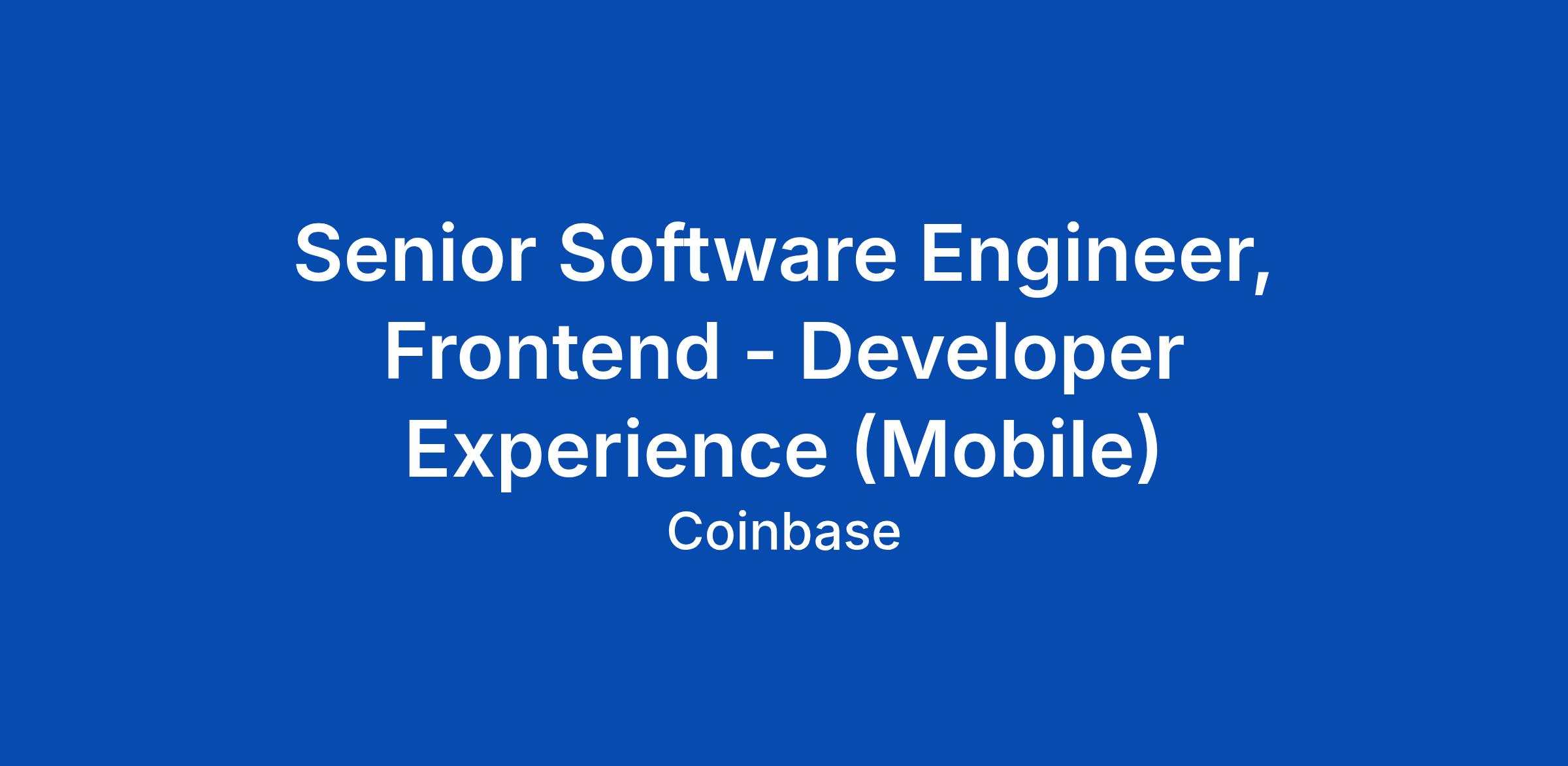 Senior Software Engineer, Frontend - Developer Experience (Mobile)