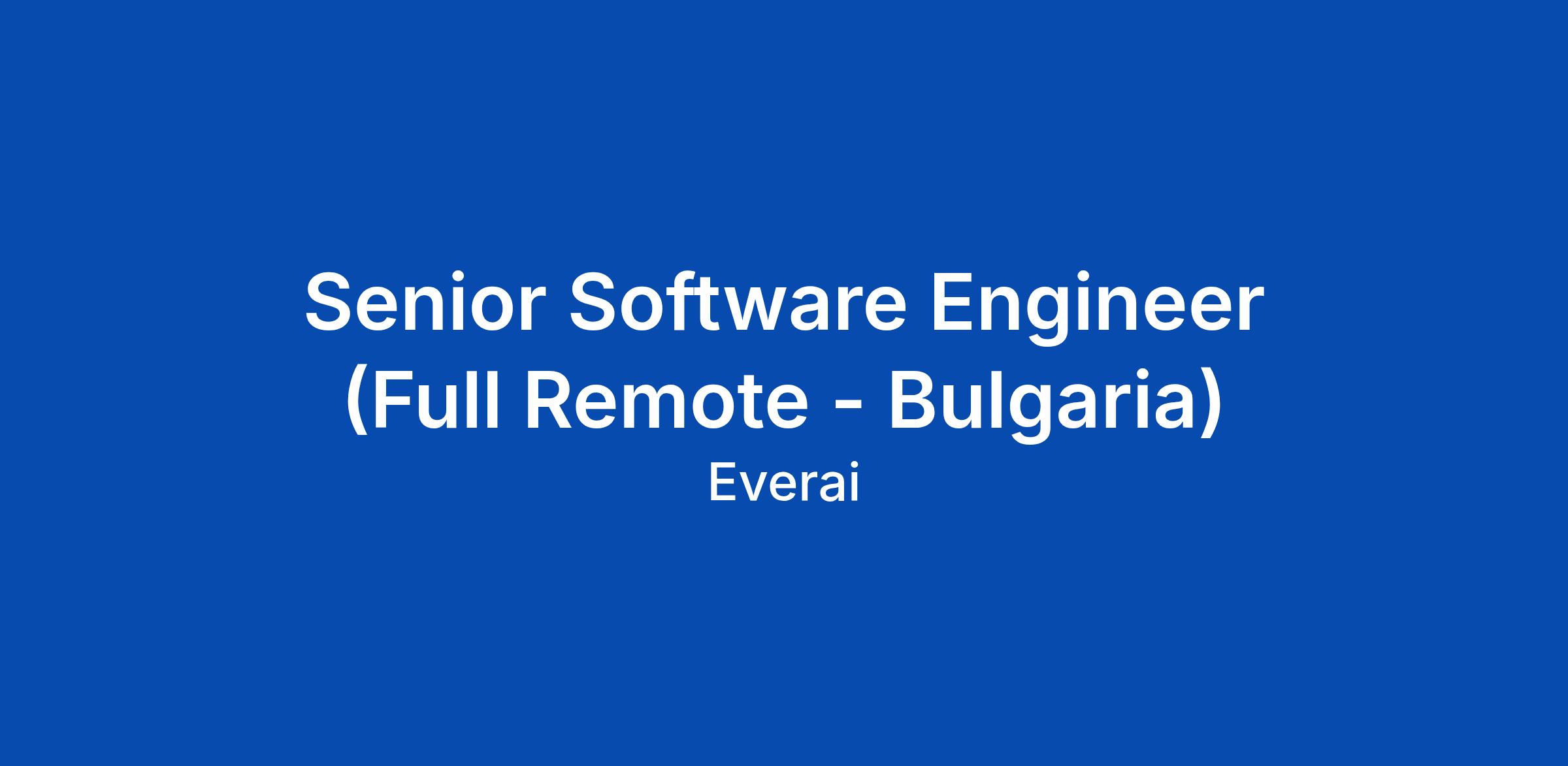 Senior Software Engineer (Full Remote - Bulgaria)