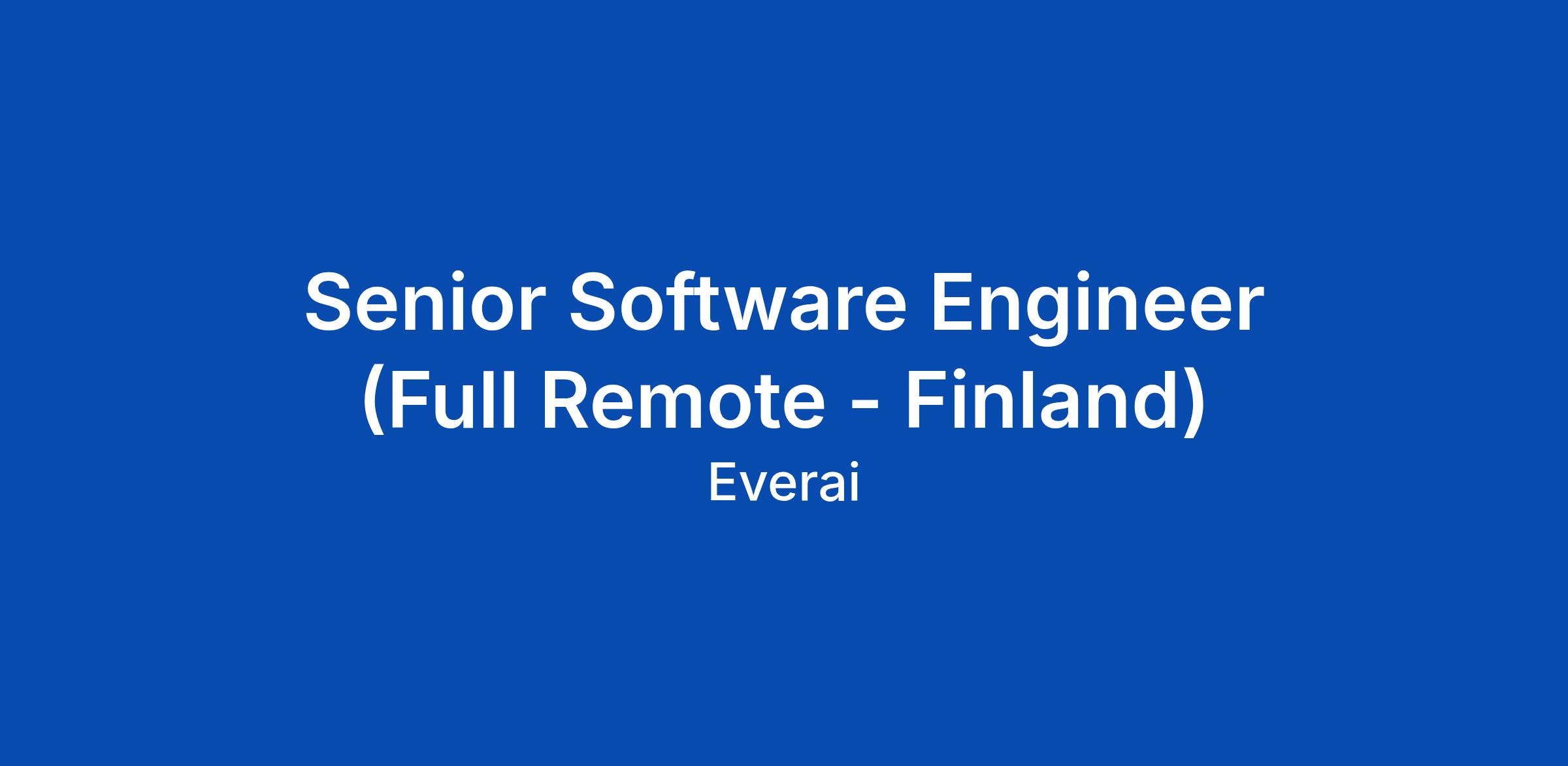 Senior Software Engineer (Full Remote - Finland)