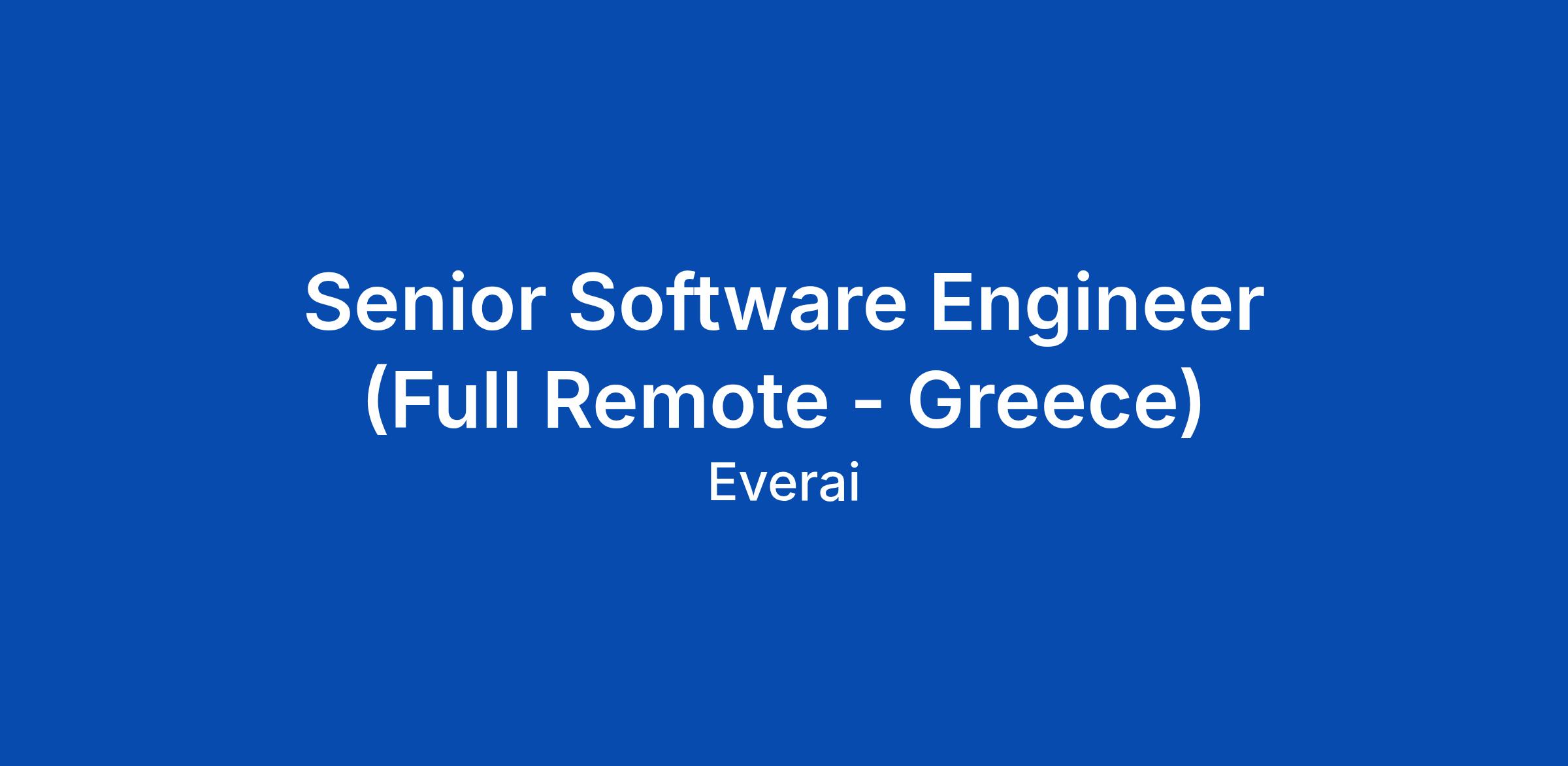 Senior Software Engineer (Full Remote - Greece)