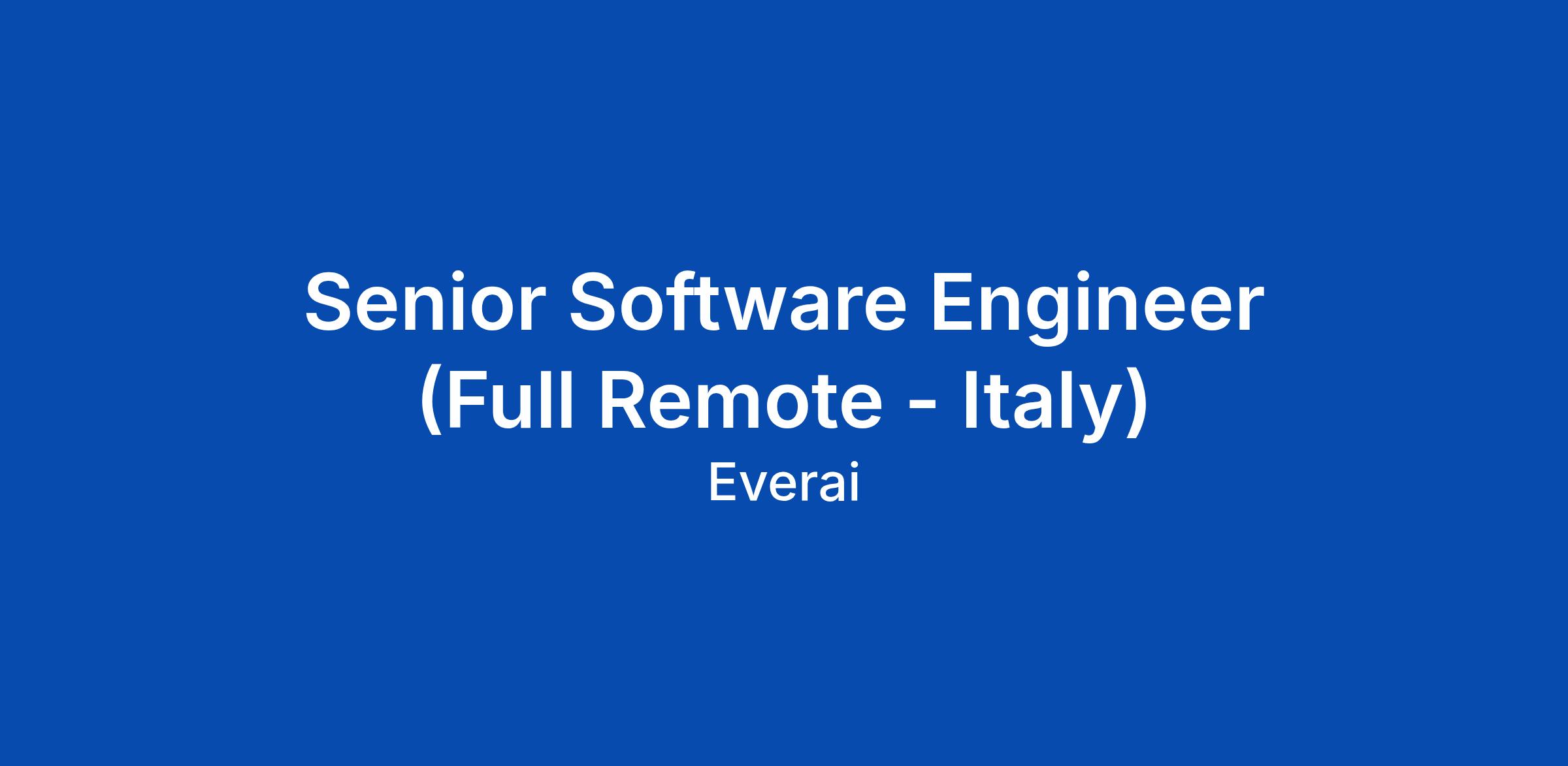 Senior Software Engineer (Full Remote - Italy)