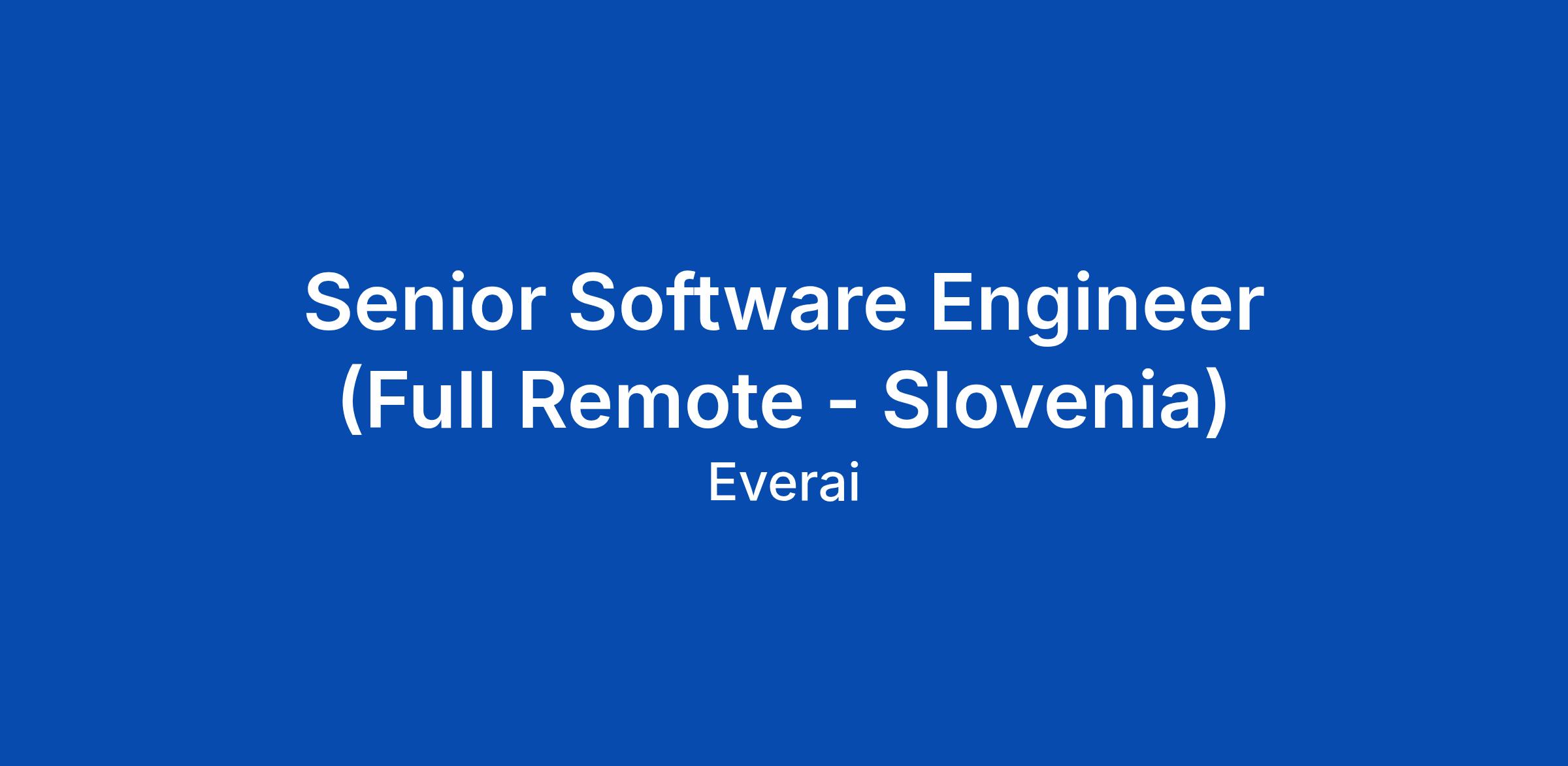 Senior Software Engineer (Full Remote - Slovenia)