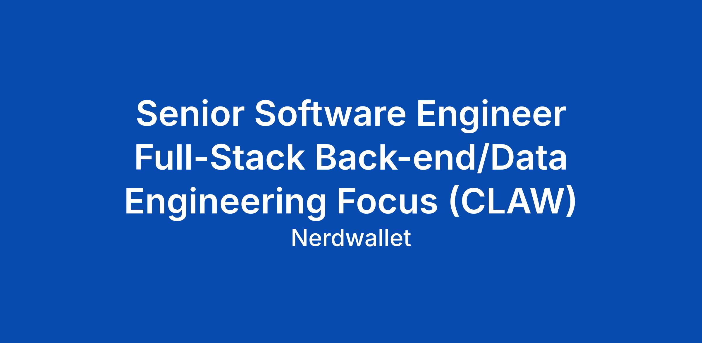 Senior Software Engineer Full-Stack Back-end/Data Engineering Focus (CLAW)