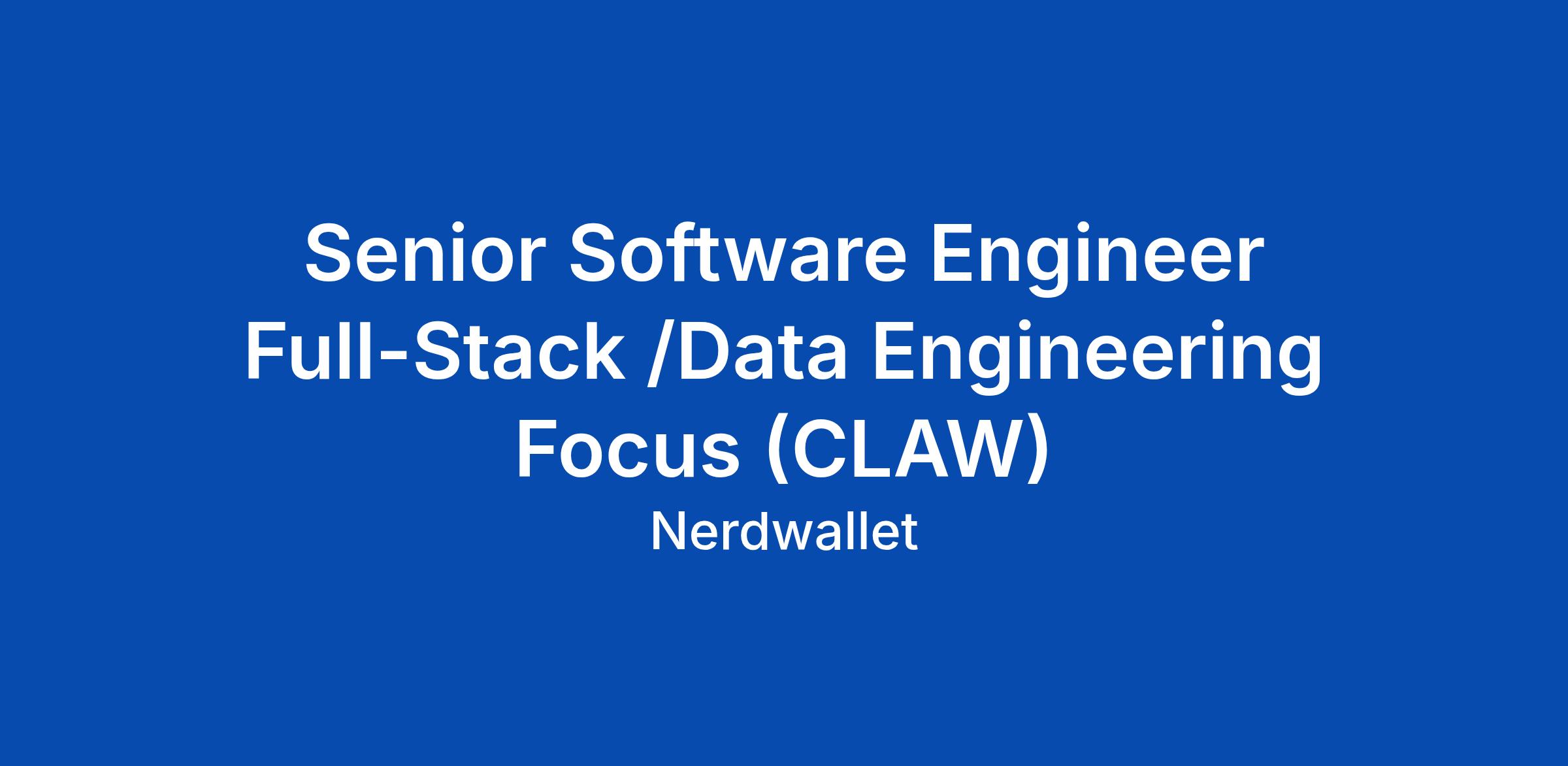 Senior Software Engineer Full-Stack /Data Engineering Focus (CLAW)