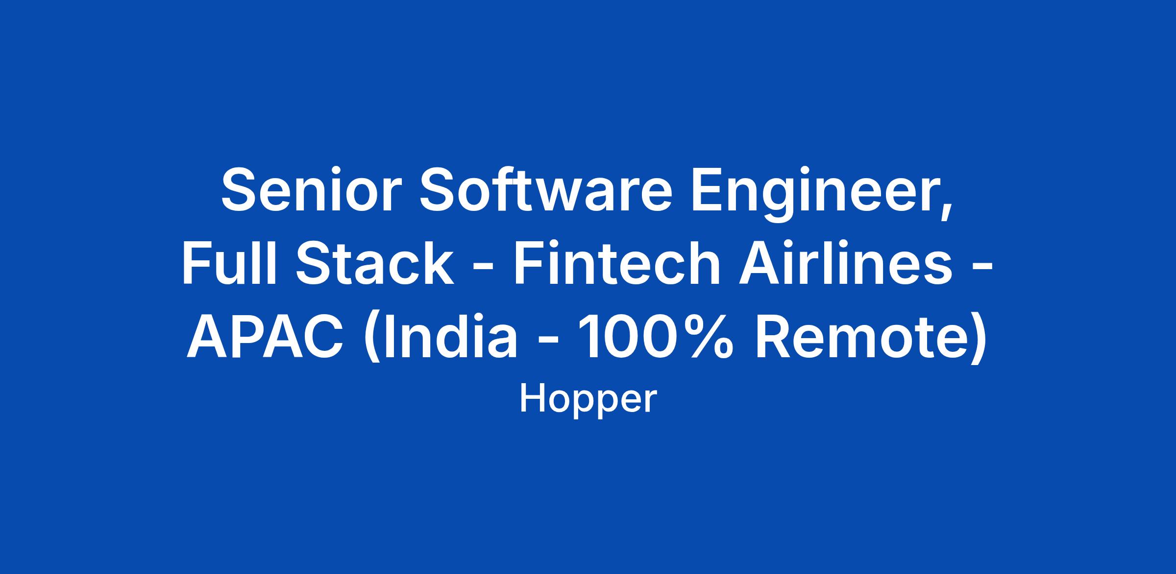 Senior Software Engineer, Full Stack - Fintech Airlines - APAC (India - 100% Remote)